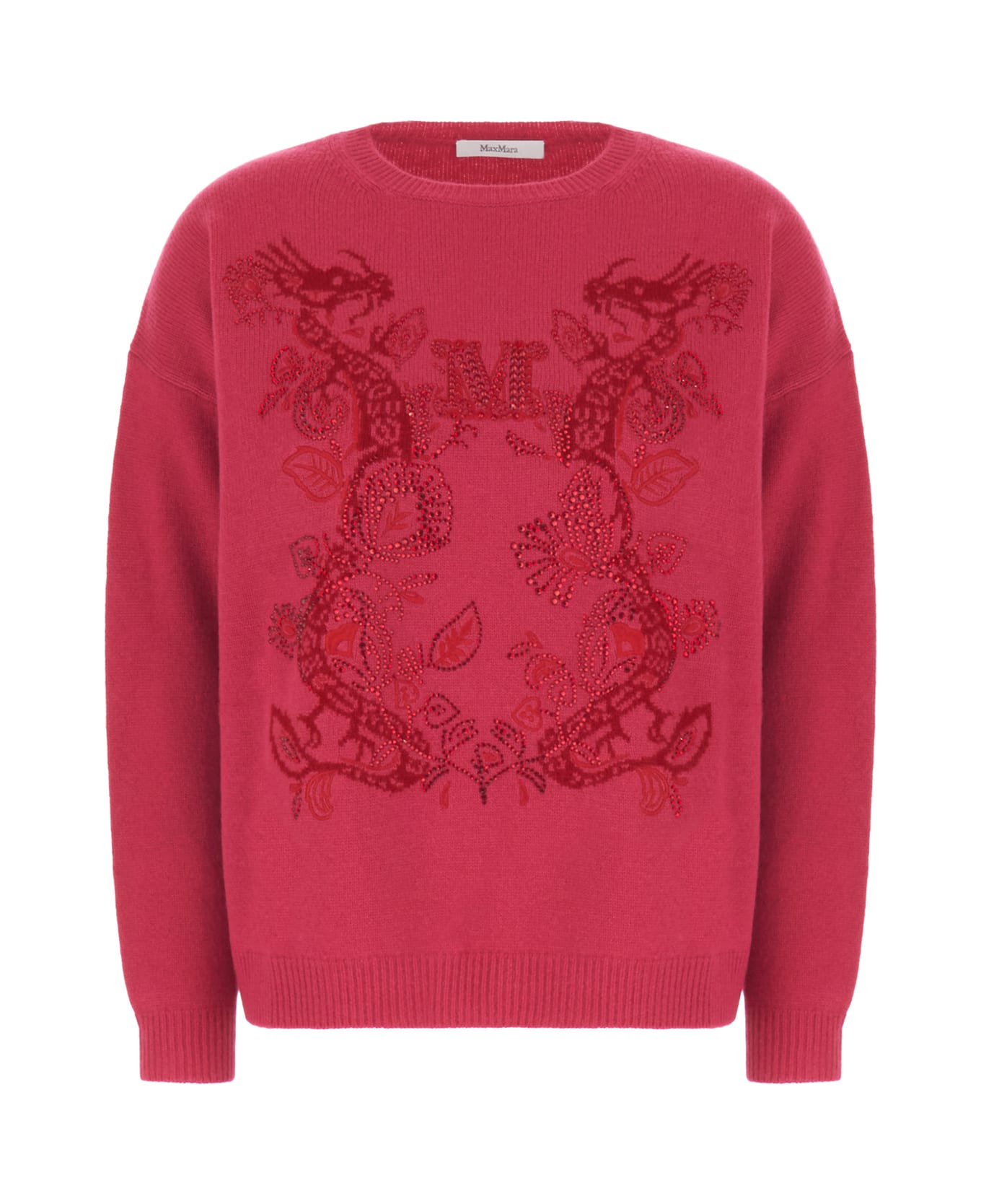 Sweater realized in wool and cashmere characterized by logoed embroidery with tonal rhinestones decoration at the front. -Ribbed crew-neck, cuffs and hemline -Loose fit