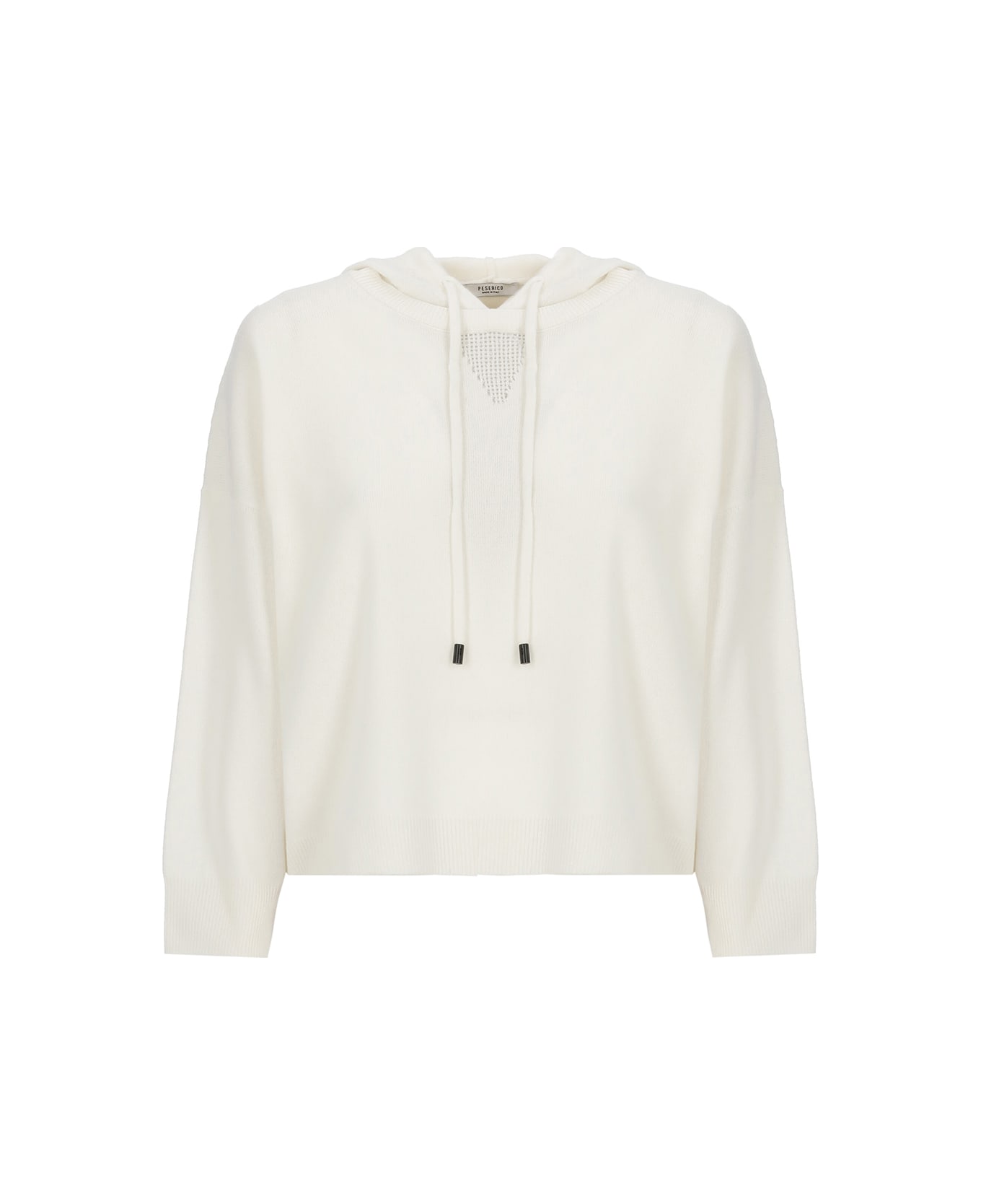 - White Peserico wool sweater for woman - Hood with drawstrings - Long sleeves - Front embroidered detail Composition: 70% Virgin Wool, 20% Silk, 10% Cashmere
