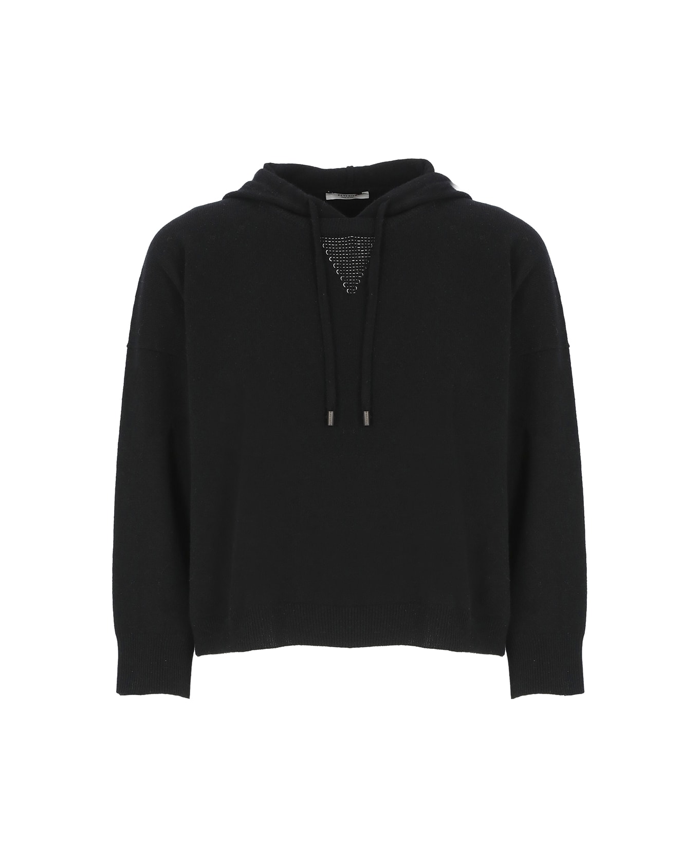 - Black Peserico wool sweater for woman - Hood with drawstrings - Long sleeves - Front embroidered detail Composition: 70% Virgin Wool, 20% Silk, 10% Cashmere