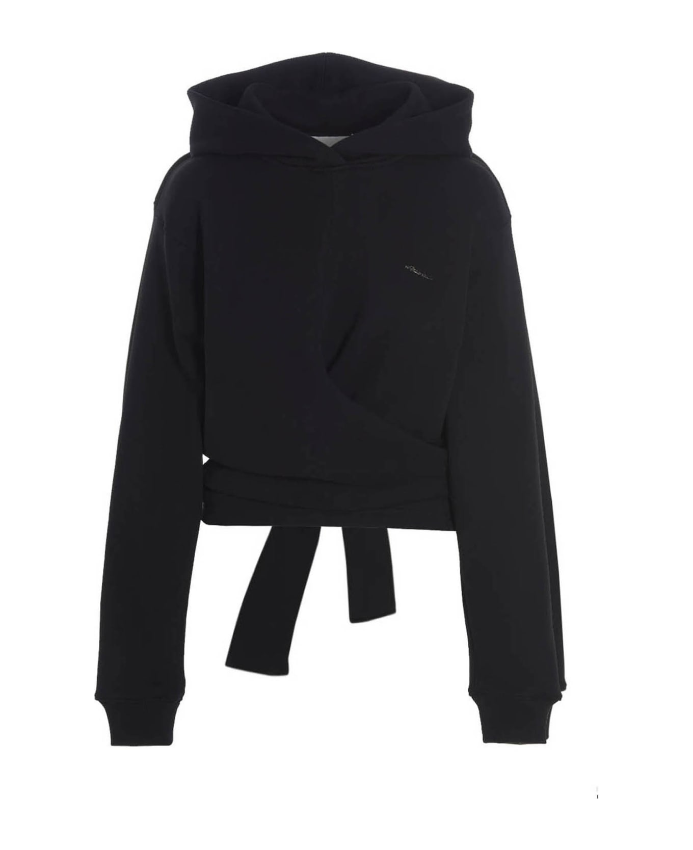 'Wrap' hooded sweatshirt in compact french terry cotton, knotted wrap detail on the back, front metal logo, long sleeves with cuffs.