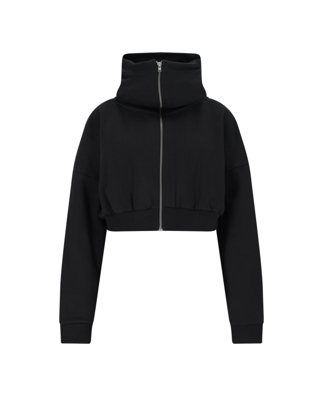 Entire Studios zip cropped sweatshirt in black cotton with maxi hood, zip closure, ribbed trims, straight hem.