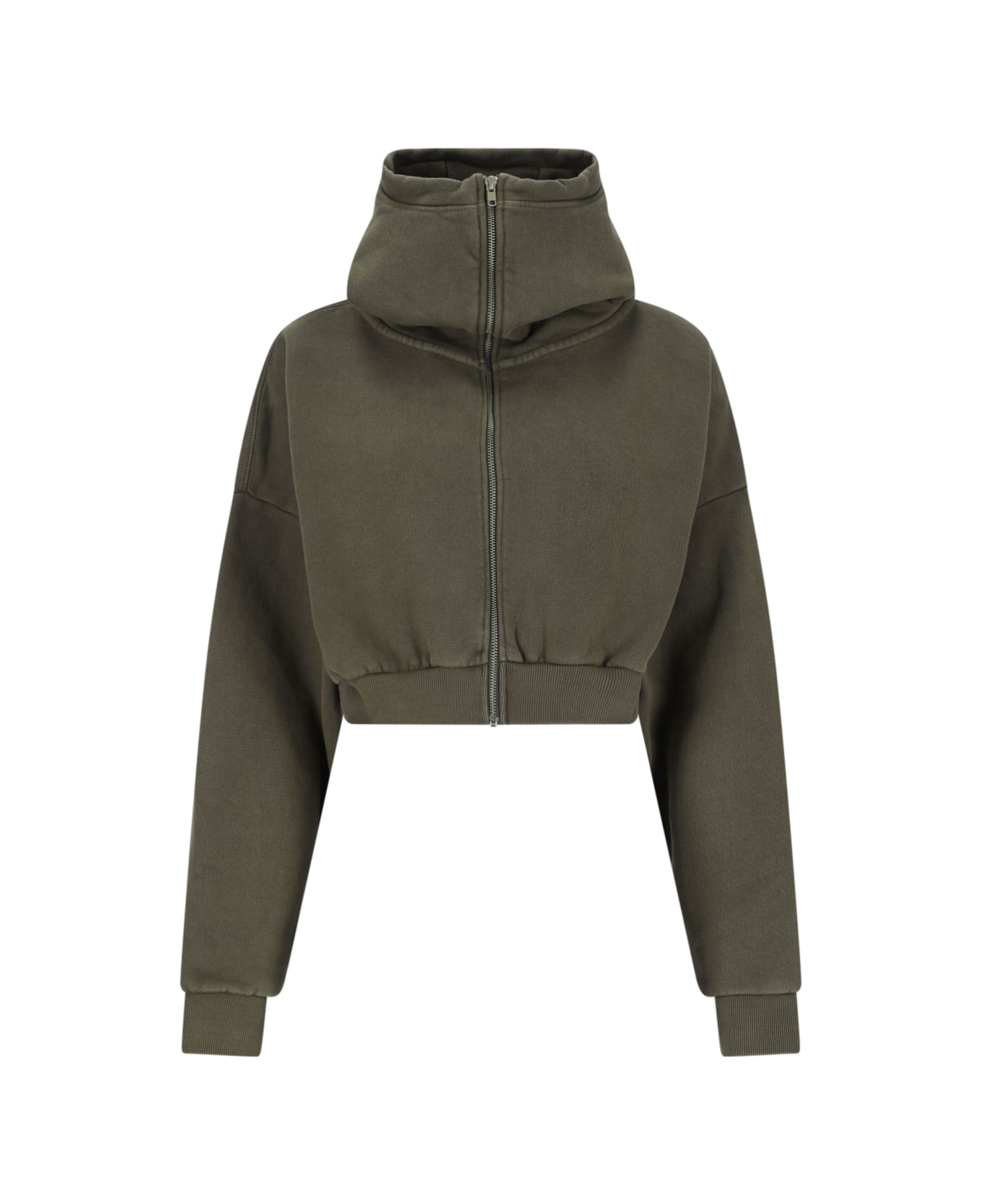 Entire Studios zip cropped sweatshirt, in green cotton with maxi hood, zip closure, ribbed trims, straight hem.
