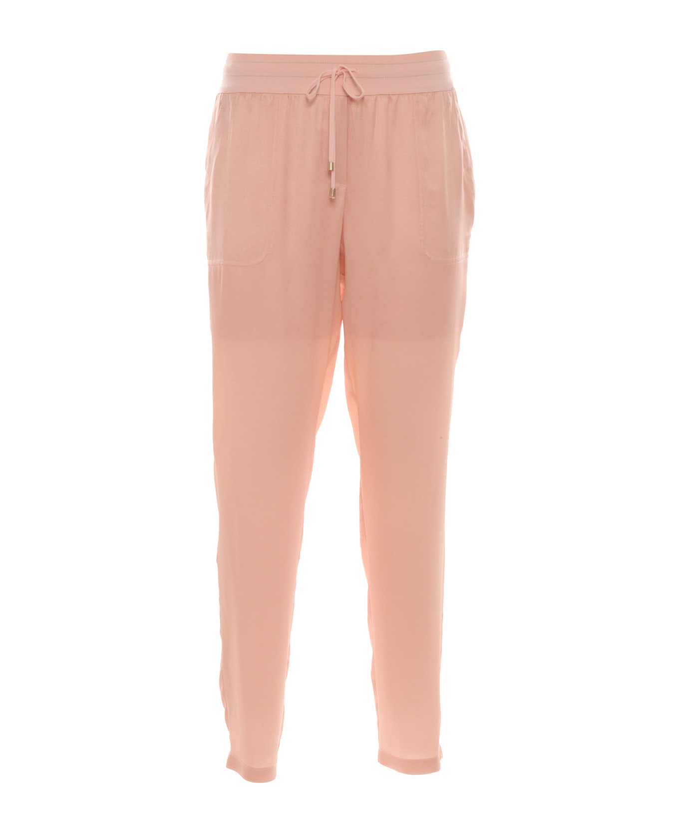 Silk blend pants, elastic waist with drawstring, lurex detail, side pockets