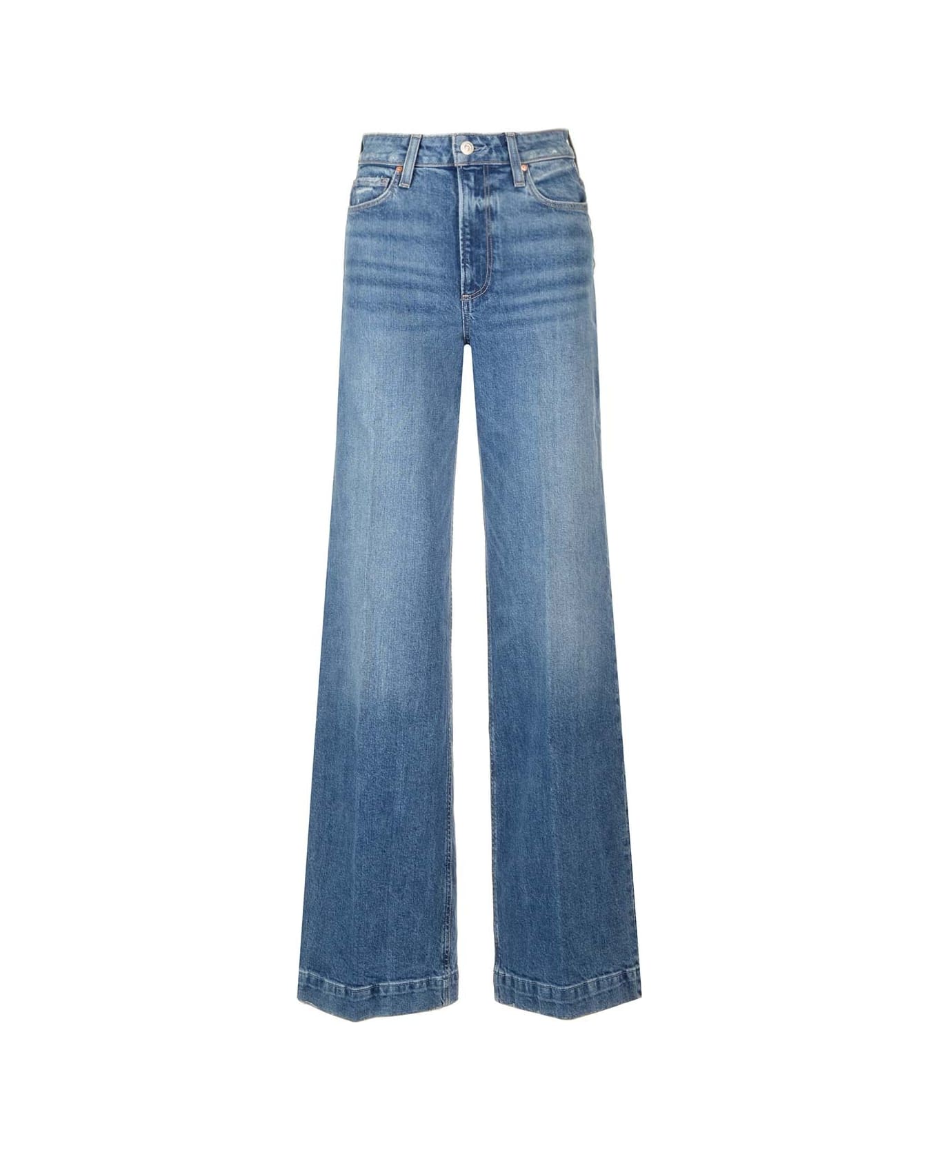 "Harper" wide leg jeans in PAIGE VINTAGE organic cotton denim in medium wash from Paige, high waisted, with belt loops, button closure and hidden zip.