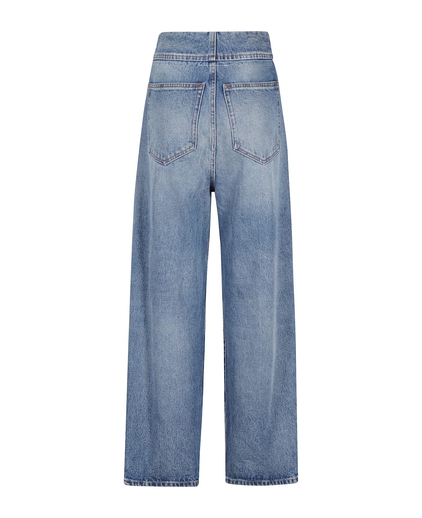 Jeans - MM6 Maison Margiela - light blue color - high waist - button closure - waist loops - straight leg - vintage treatment - 5 pocket model - regular fit