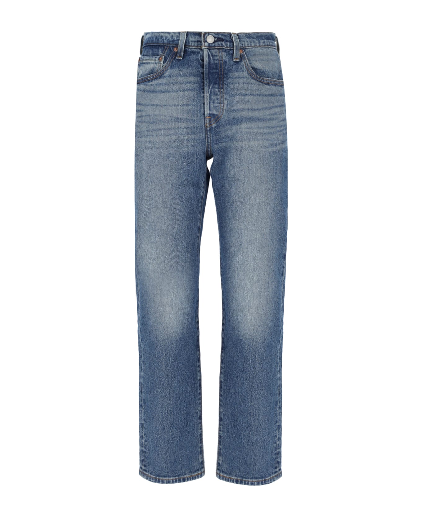 Levi's Strauss 501® jeans in blue denim with belt loops, button closure, five pocket design, logo patch on the back, red logo label on the back, and straight hem. Composition: 99% Cotton, 1% Elastane
