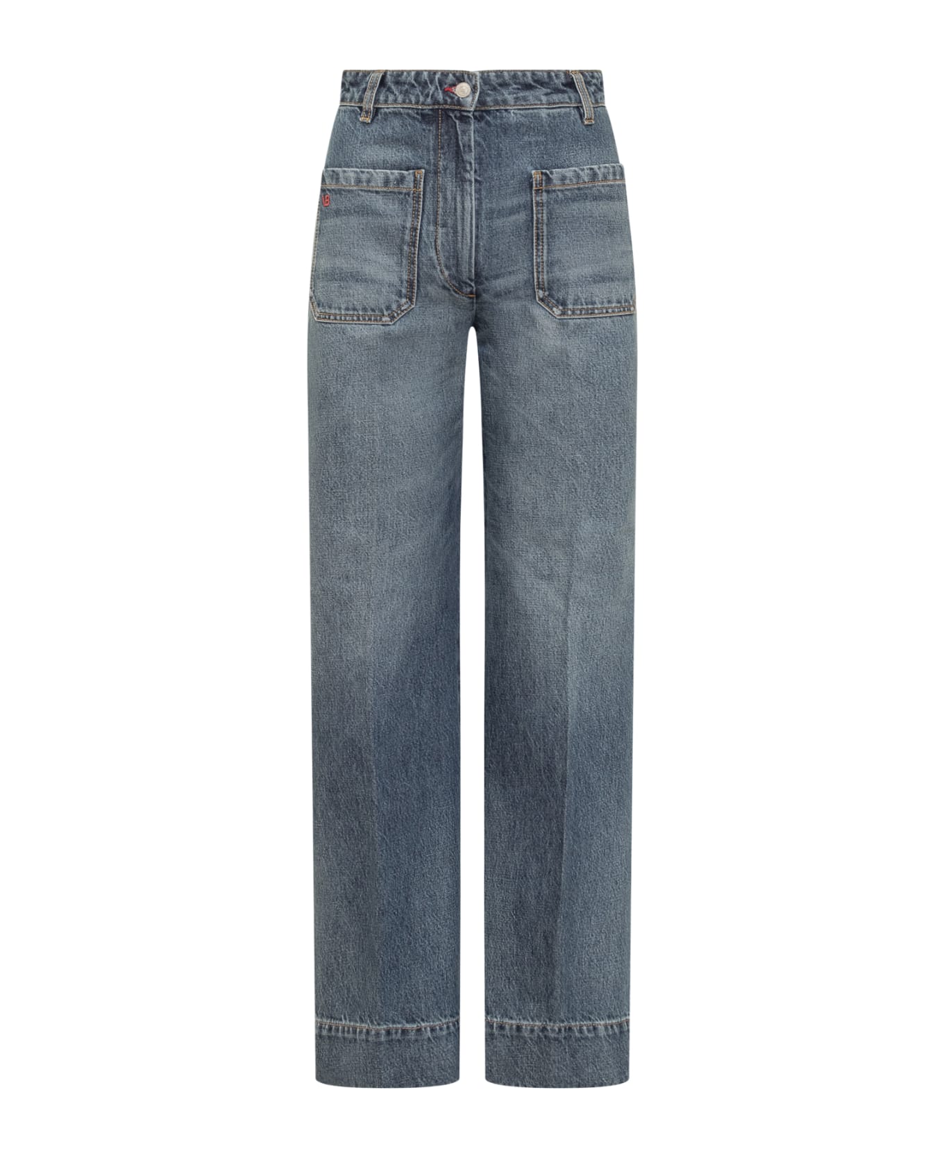 Long jeans. Button and zip closure. Belt loops. Four pockets. Embroidered logo on the front pocket. Jeans sewn with two-tone.