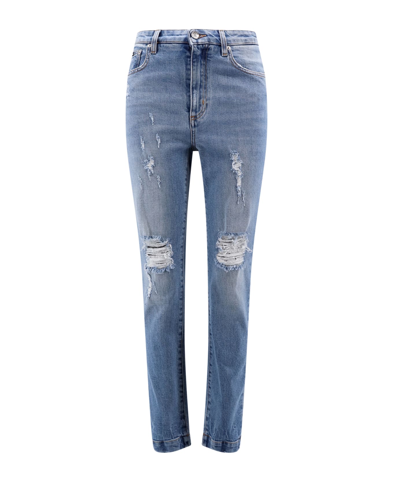 - High Waist With Zip And Metal Button - Five Pockets And Fabric Logo Tag - Metal Patch With Logo Engraving - Made In Italy - 98% Cotton 2% Elastane