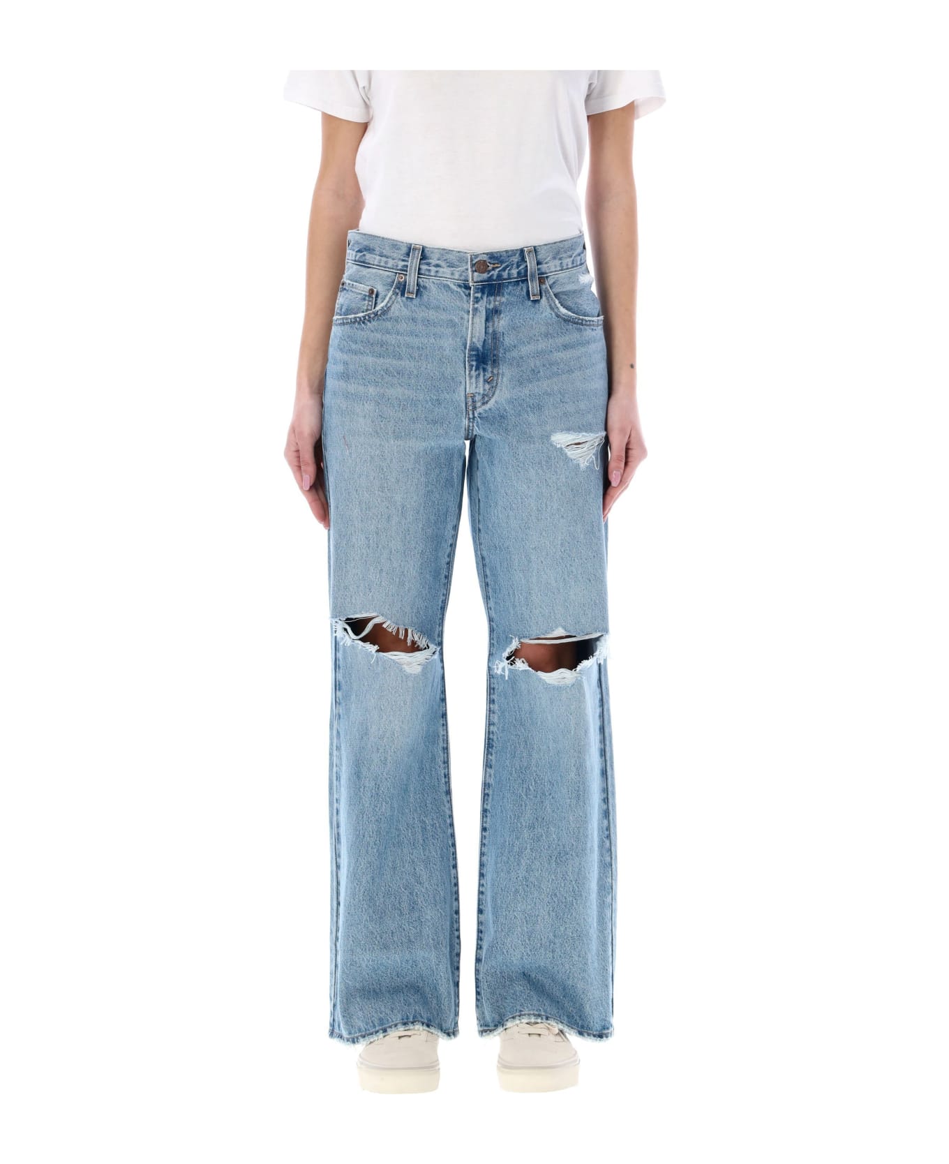 Cotton Baggy Bootcut Jeans By Levi's. Featuring: Button And Zip Fastening Belt Loops Mid-rise Five Pockets Vintage-inspired Fit Bootcut Leg Ripped Details Model Is 1,72 M Tall And She Is Wearing Size 27