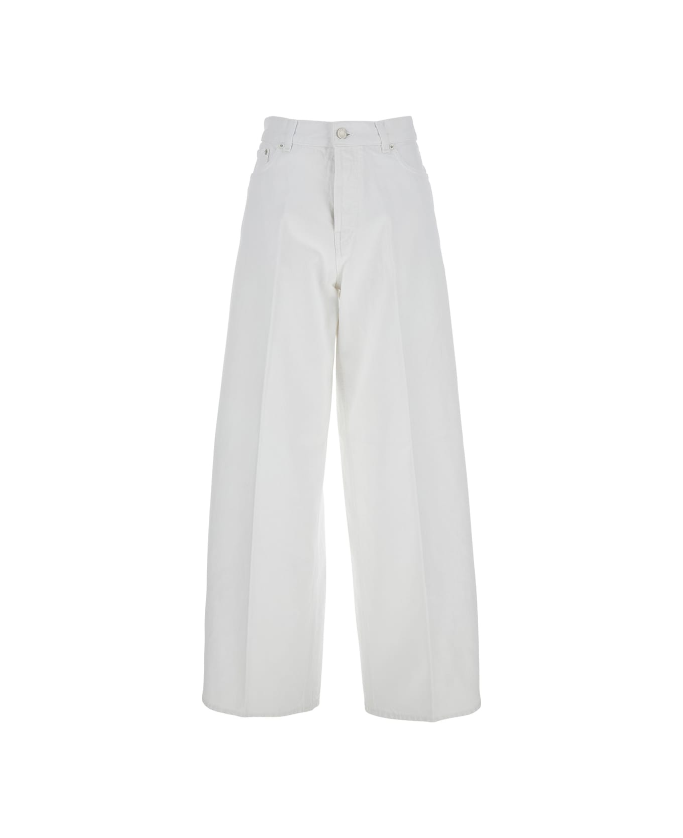 Jeans White Five-pocket design Belt loops Front button closure Two side pockets Logo patch on the back Two patch pockets on the back Cotton and linen blend Loose fit