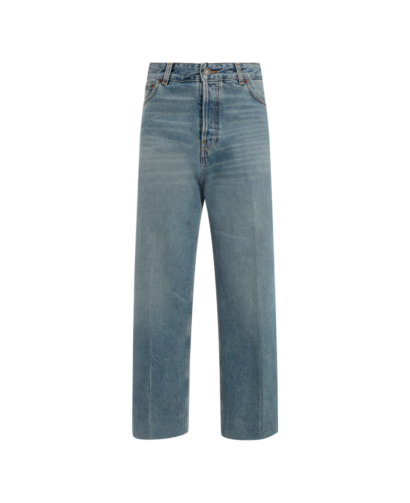Cotton betty boyfriend jeans by haikure, button and zip front fastening, straight five-pocket design, belt loops on waistband, leather patch with iconic brand signature pressure print applied on back.