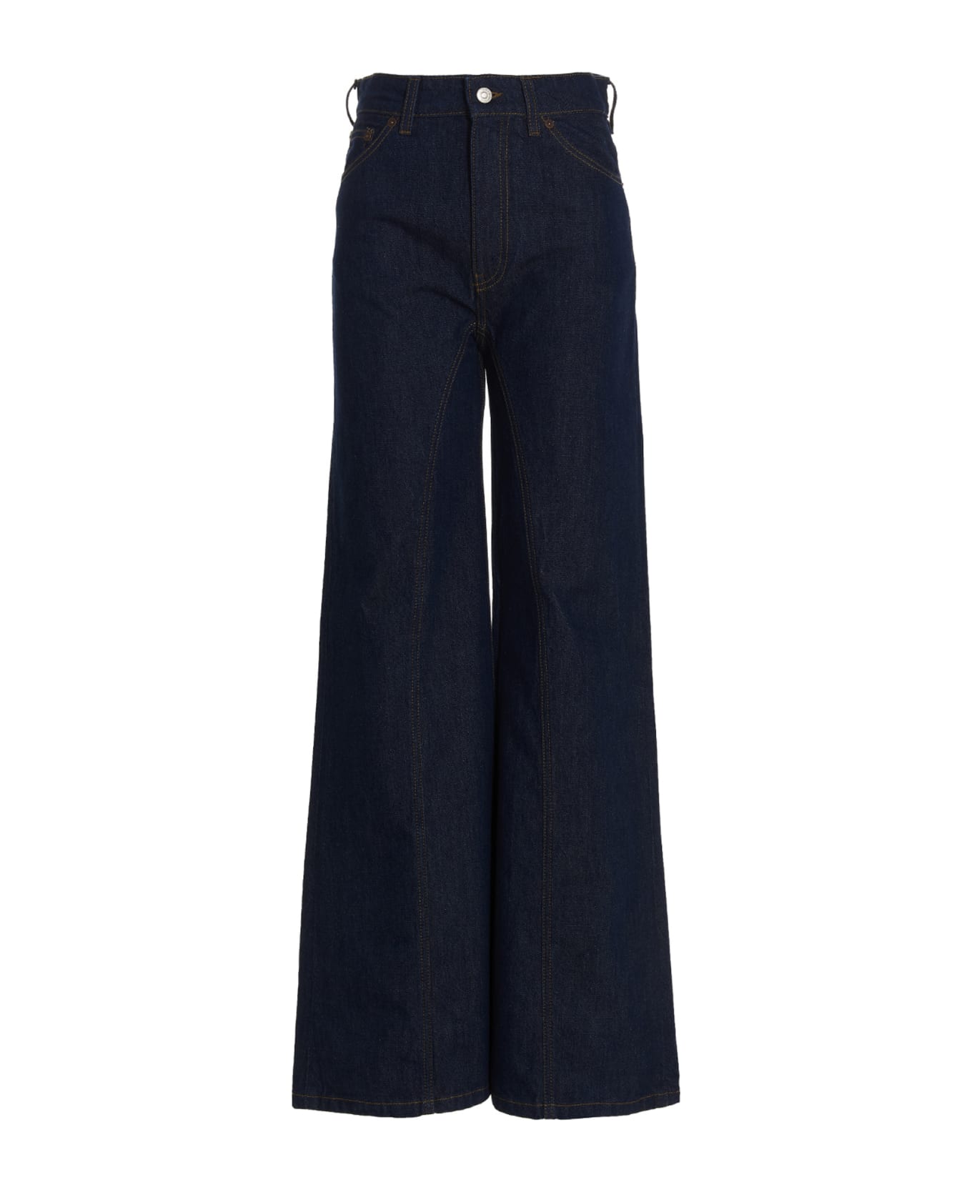 Bianca' high-waist denim jeans with zip and button closure and a slightly loose leg. The color may fade after some washing, a result of specific working techniques, please follow the wash instructions. ns.