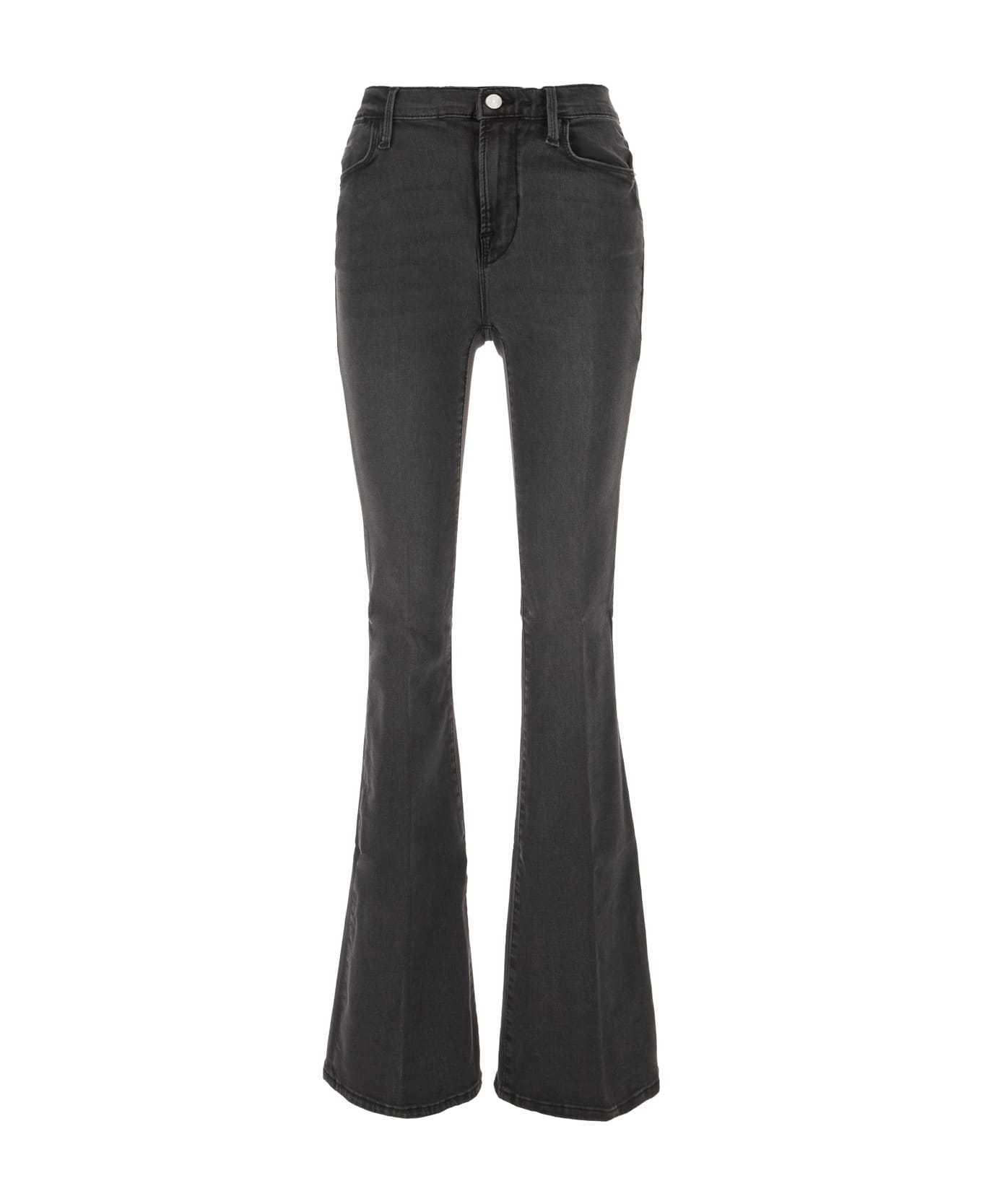 Flared leg jeans realized in stonewashed stretch cotton blend denim characterized by belt loops at the waist. -Concealed zip closure with a single visible button -Five classic pockets