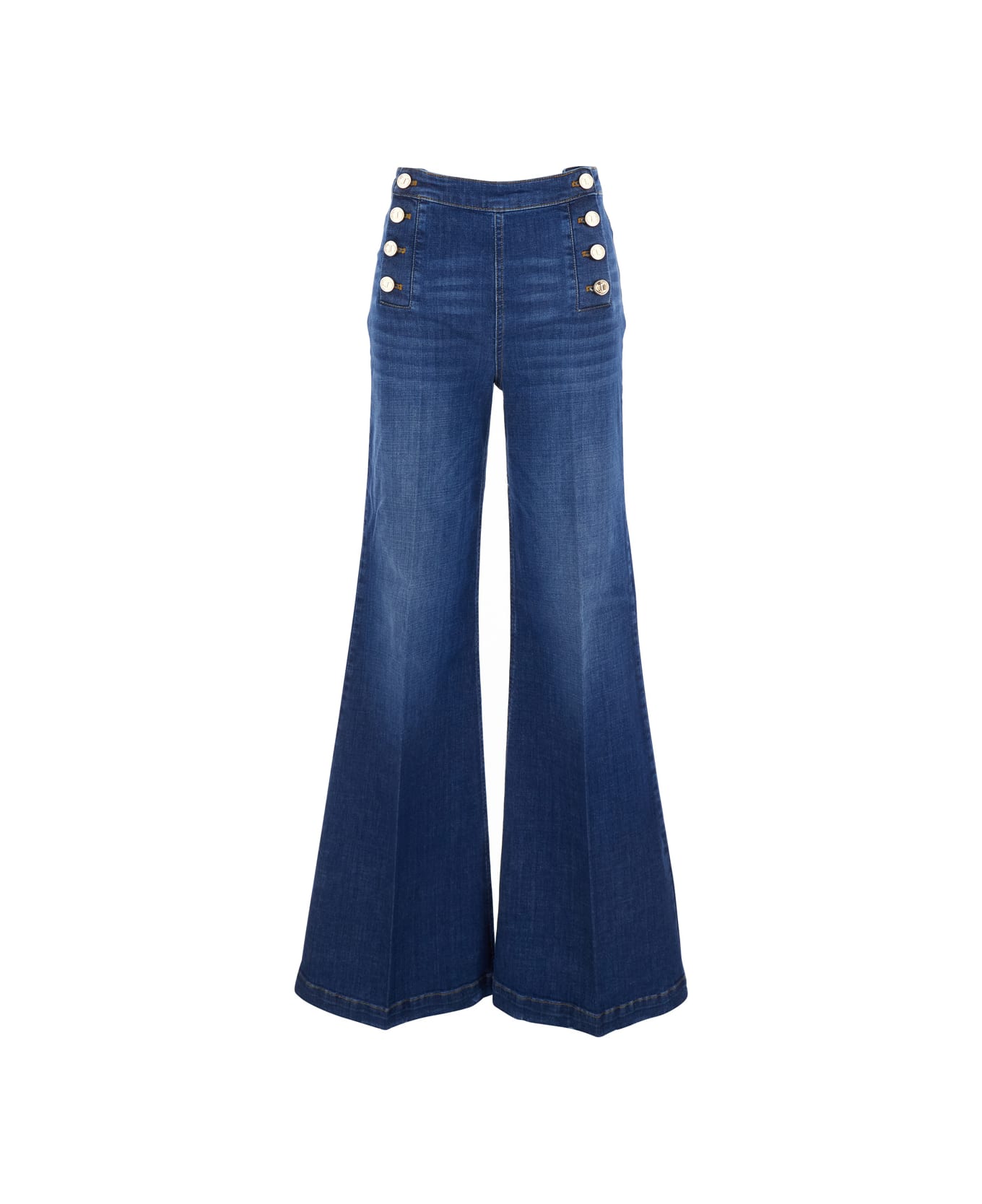 Blue Jeans With Flare Design And Double Side Button Detailing In Cotton Woman