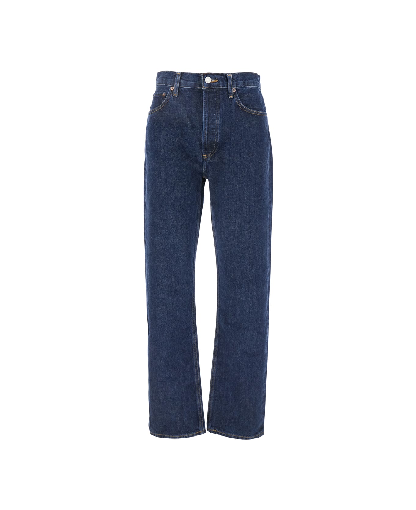 Jeans Blue Belt loops Front button and zip closure Logo patch on the rear Straight leg Straight hem Five-pocket style Denim Regular fit