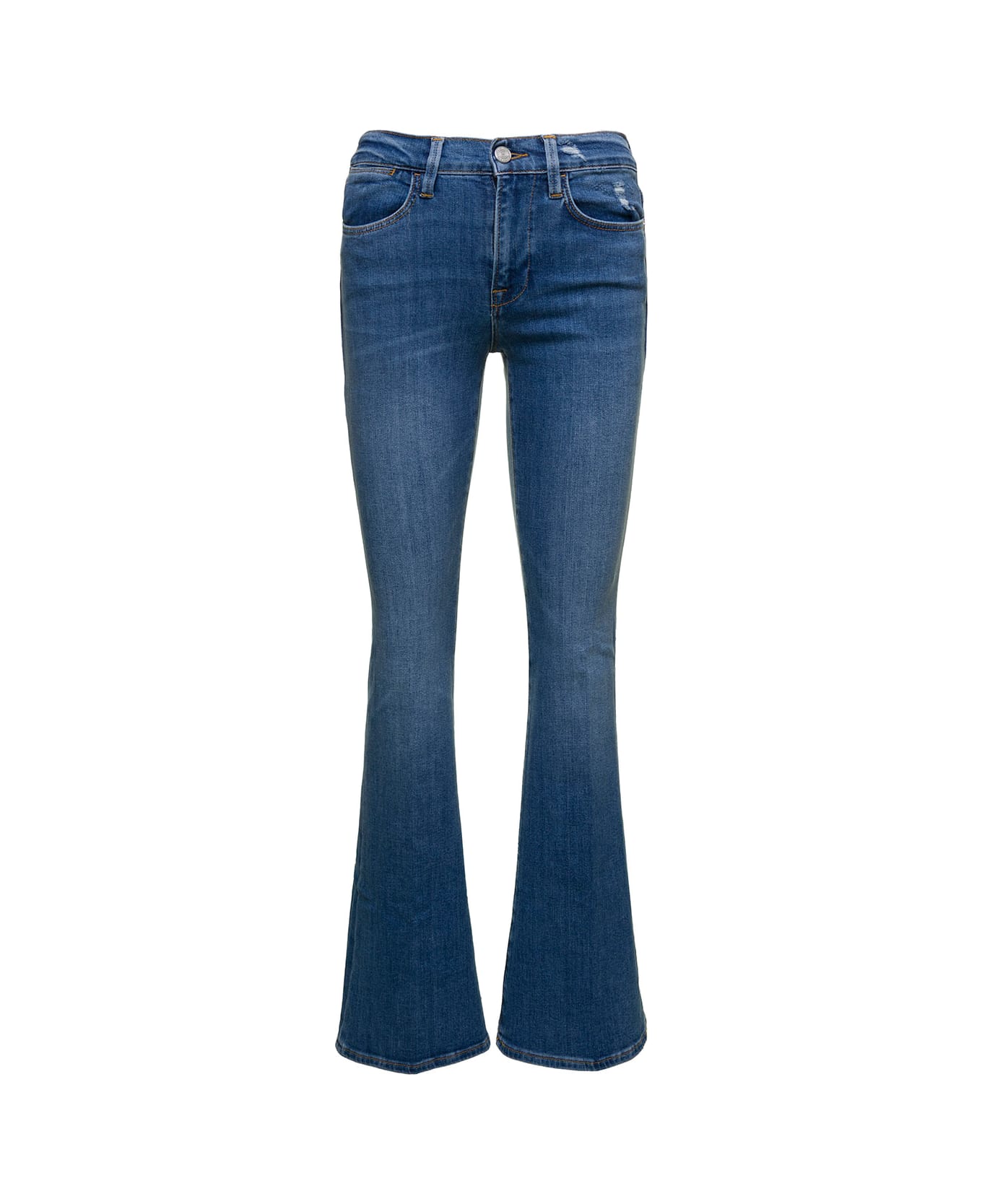 Blue Medium Rise Flare Jeans In Cotton Blend Denim Woman