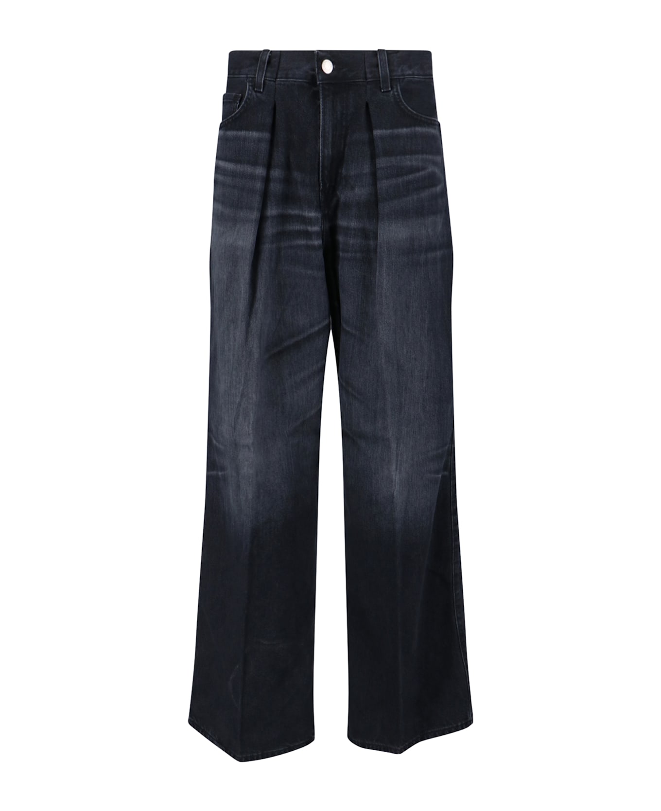 Candy Black Tencel" wide jeans in black cotton blend with distressed wash, mid waist, belt loops, button and zip closure, five-pocket design, two front pleats, back logo patch, straight leg.