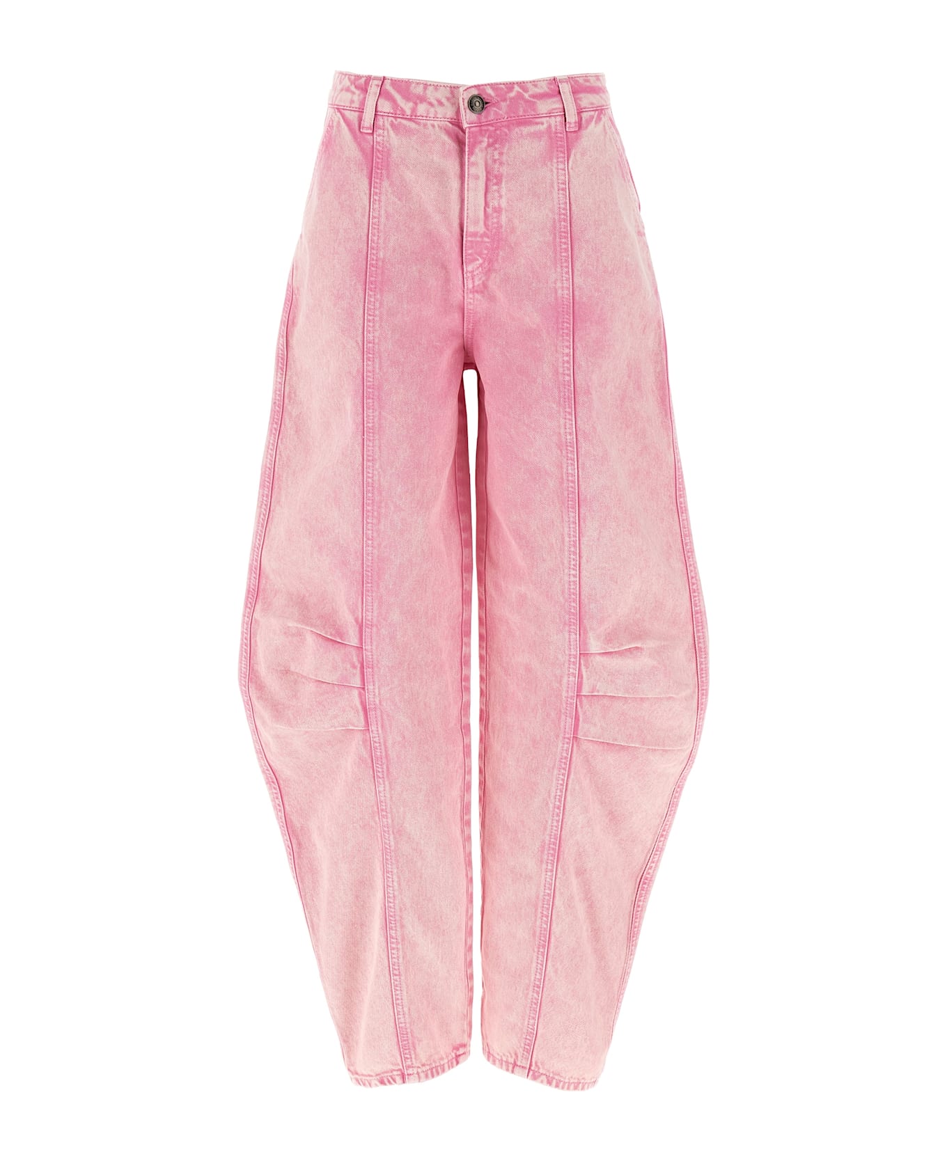 High-waisted cotton denim Cargo Denim Pants jeans with zip and button closure, wide contoured leg with knee curl, five pockets, and leather logo label at the back.