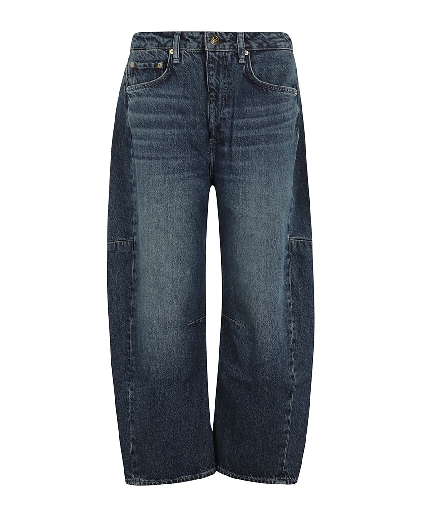 Charlie Barrel jeans - Rag & Bone - dark blue color - zipper and button closure - waist loops - five pockets - tapered model