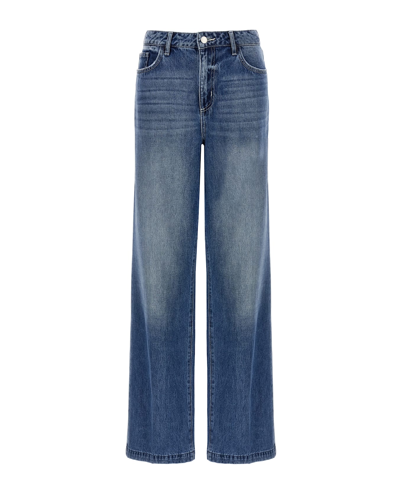 High-waisted stonewashed cotton denim Clayton jeans with wide leg, five pockets, zip and front button closure.