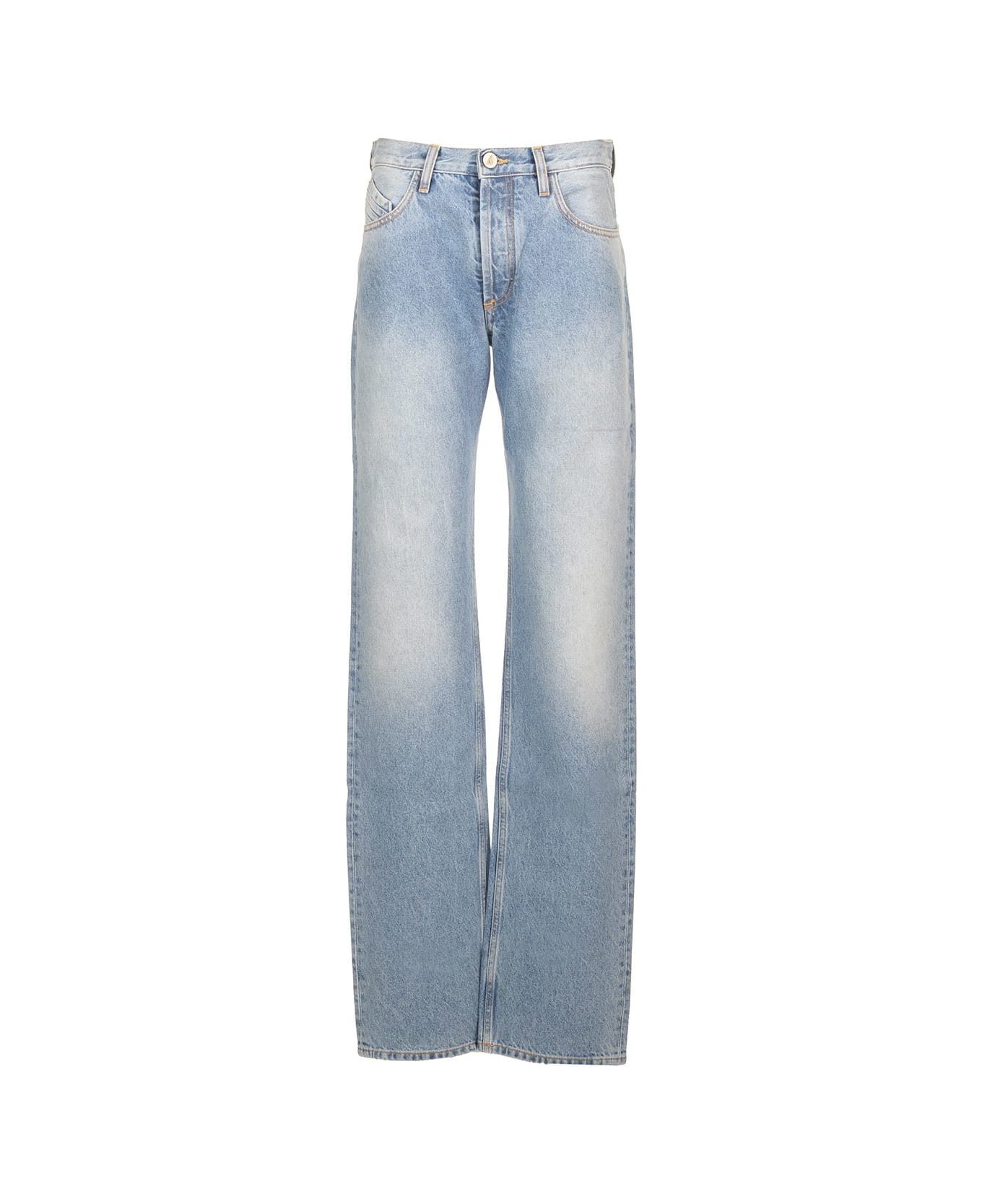 Boyfriend jeans from The Attico in sky blue denim with glossy coating and pleated fifth pocket. Composition: Main Material: 100% CO Lining: 65% PL 35% CO