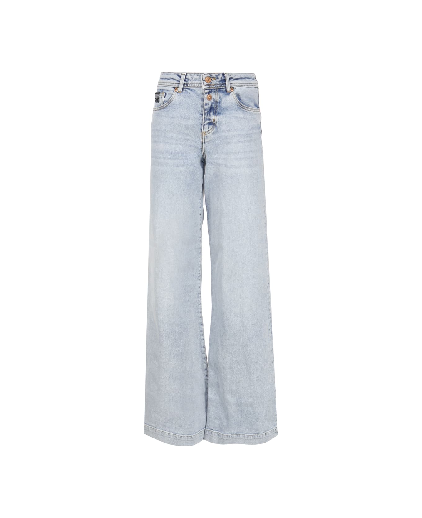 Indigo Cotton Denim Jeans from Versace Jeans Couture -Covered front closure -Metal logo button -Waist with belt loops -Five pocket model -Wash used -Palace silhouette -Regular fit -Colour: indigo -98% Cotton 2% Elastane