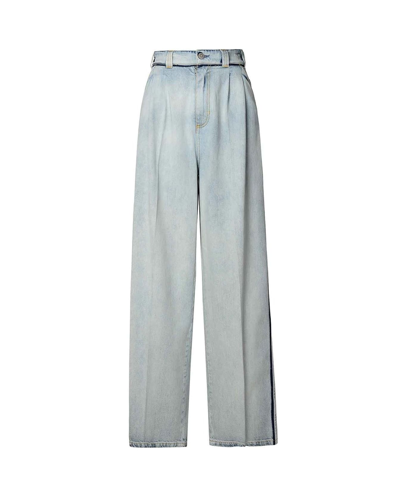 Composition: 100% Cotton Belt loops Four pockets Pleated design Relaxed fit Wideleg Machine wash (delicate) Lightwashed indigo denim Zip fly High rise Made in Italy