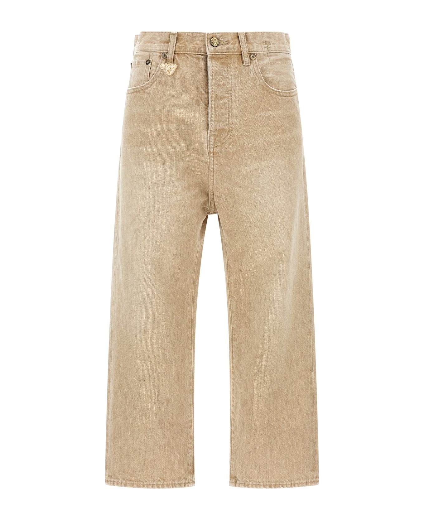 Garment-dyed cotton denim jeans with high waist and crop leg at the ankle, button closure, five pockets, back logo tag. Composition: 100% cotton