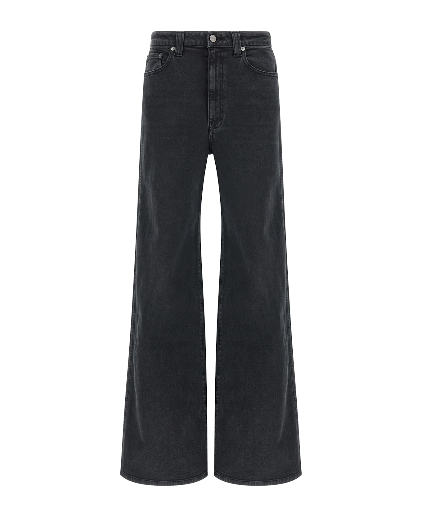 'Dane' high waist cotton denim jeans, flared wide leg, zip and front button closure, five pockets. Composition: 98% cotton 2% polyurethane