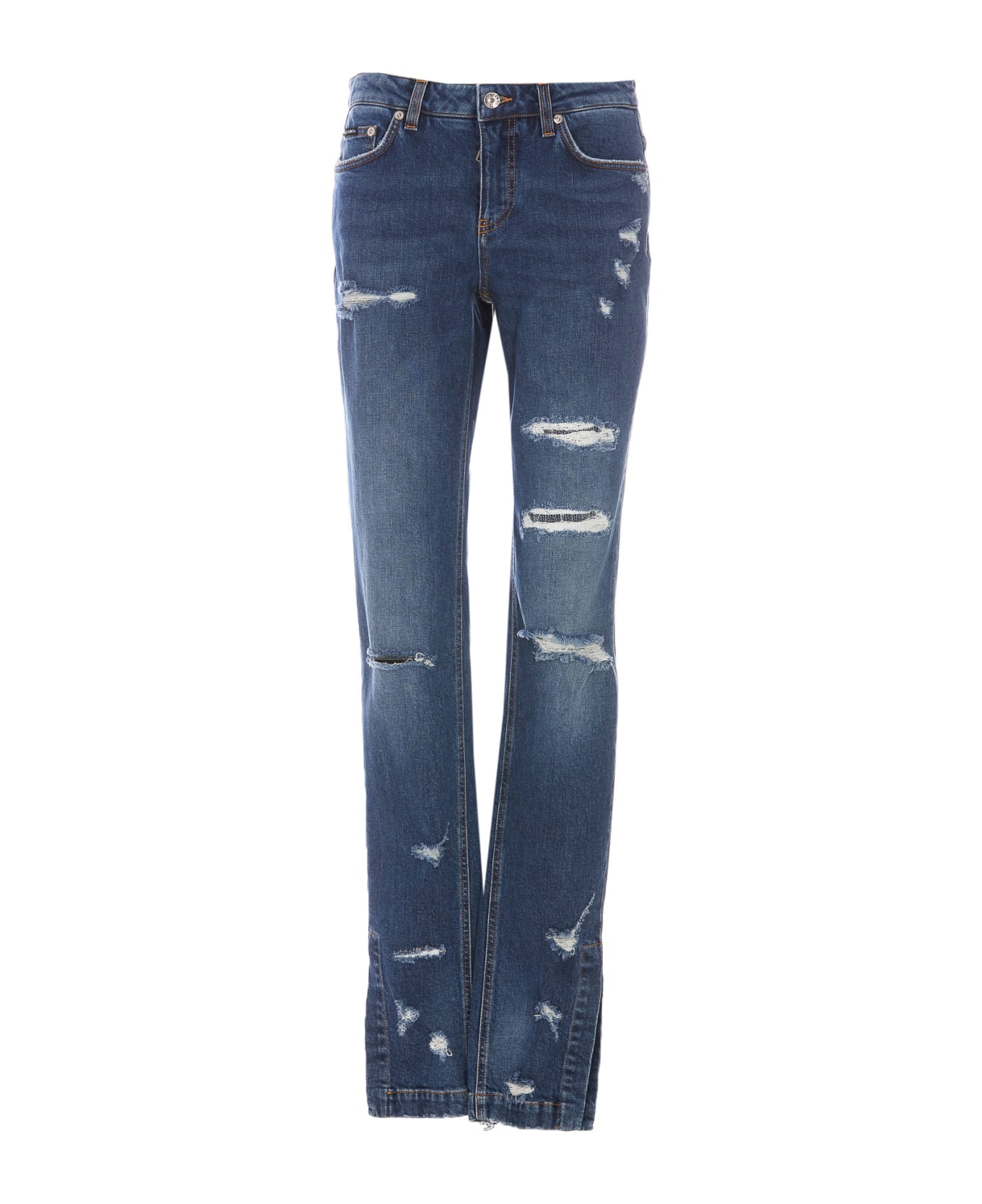 - woman denim jeans, button and zip closure, pockets, distressed effect, back logo, slim fit - Composition: 98% Cotton, 2% Elastane