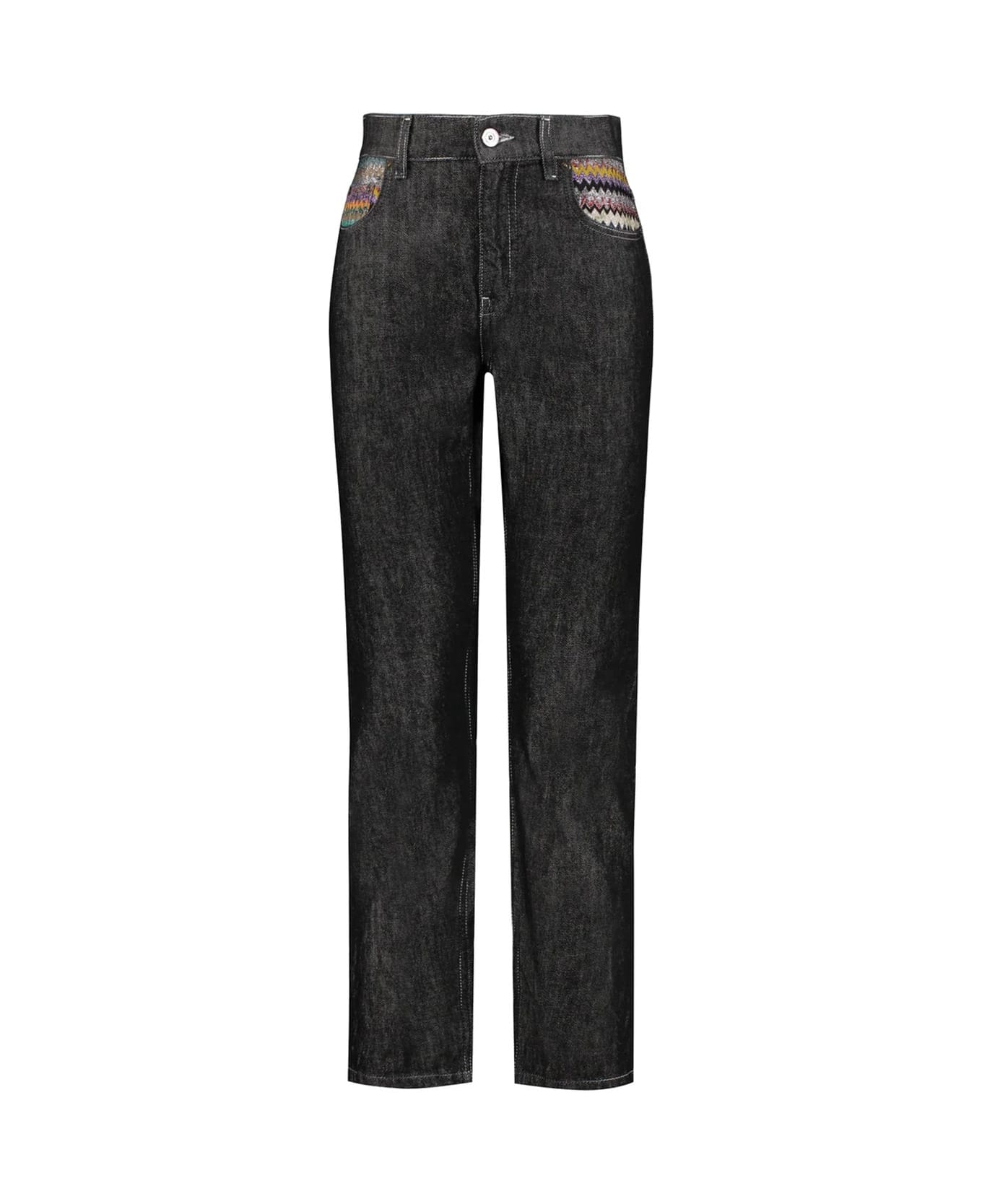 Composition: 100% Cotton Belt loops Five pockets Button and zip closure Machine wash (delicate) Contrasting stitching Details in lurex yarn Logo engraved on the buttons Contrasting inserts Made in Italy