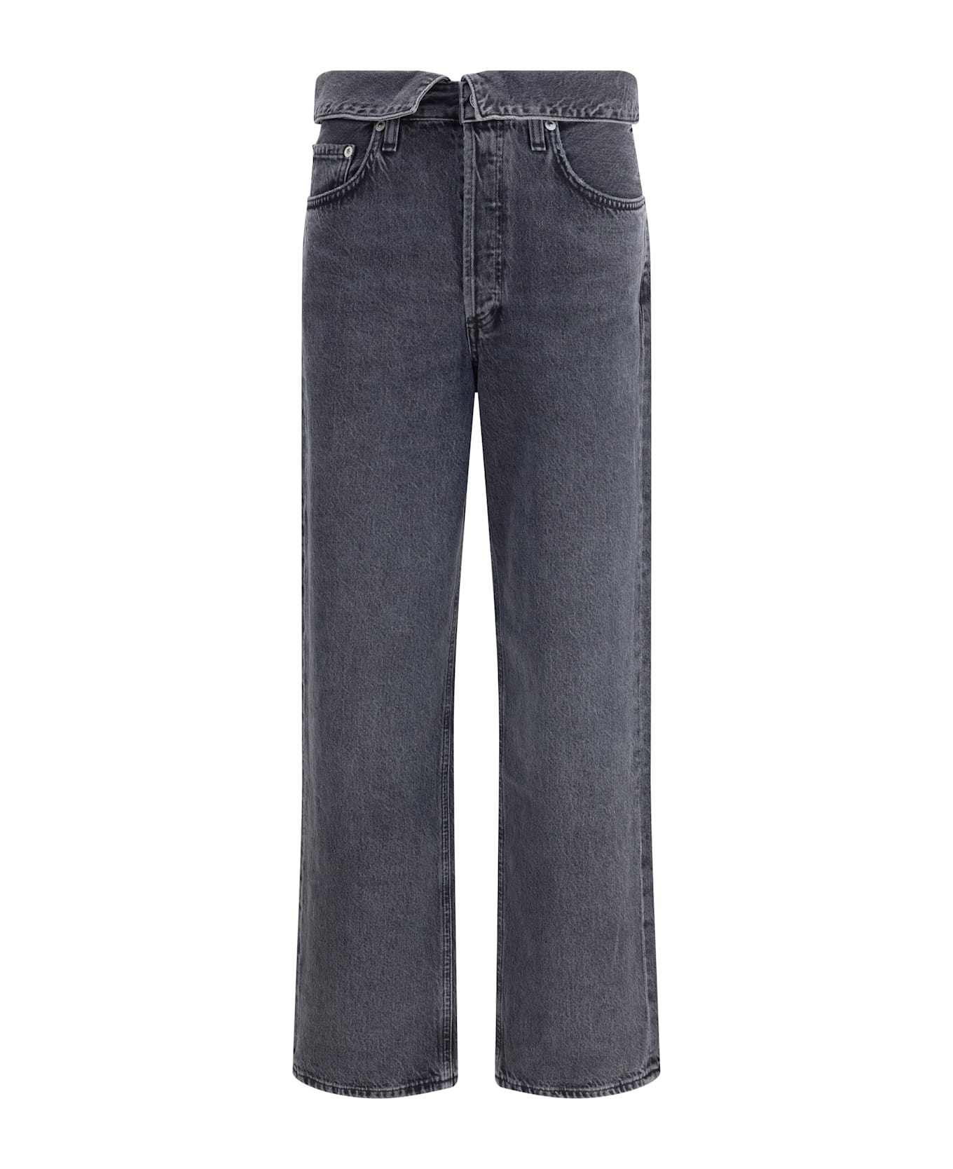 Agolde's echo taper jeans feature a high waist enhanced by a unique folded belt detail. the loose fit on the leg tapers gently to the ankle, creating a contemporary, tailored look. made from regenerated cotton, these jeans are incredibly lightweight, ideal for warmer days.