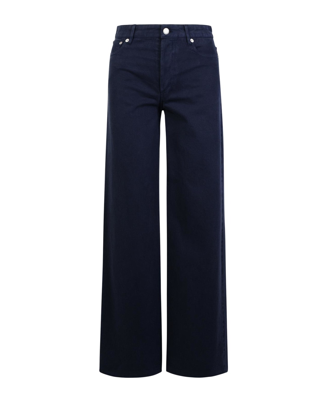 Made of cotton denim, belt loops, button closure and concealed flap buttons, five-pocket model