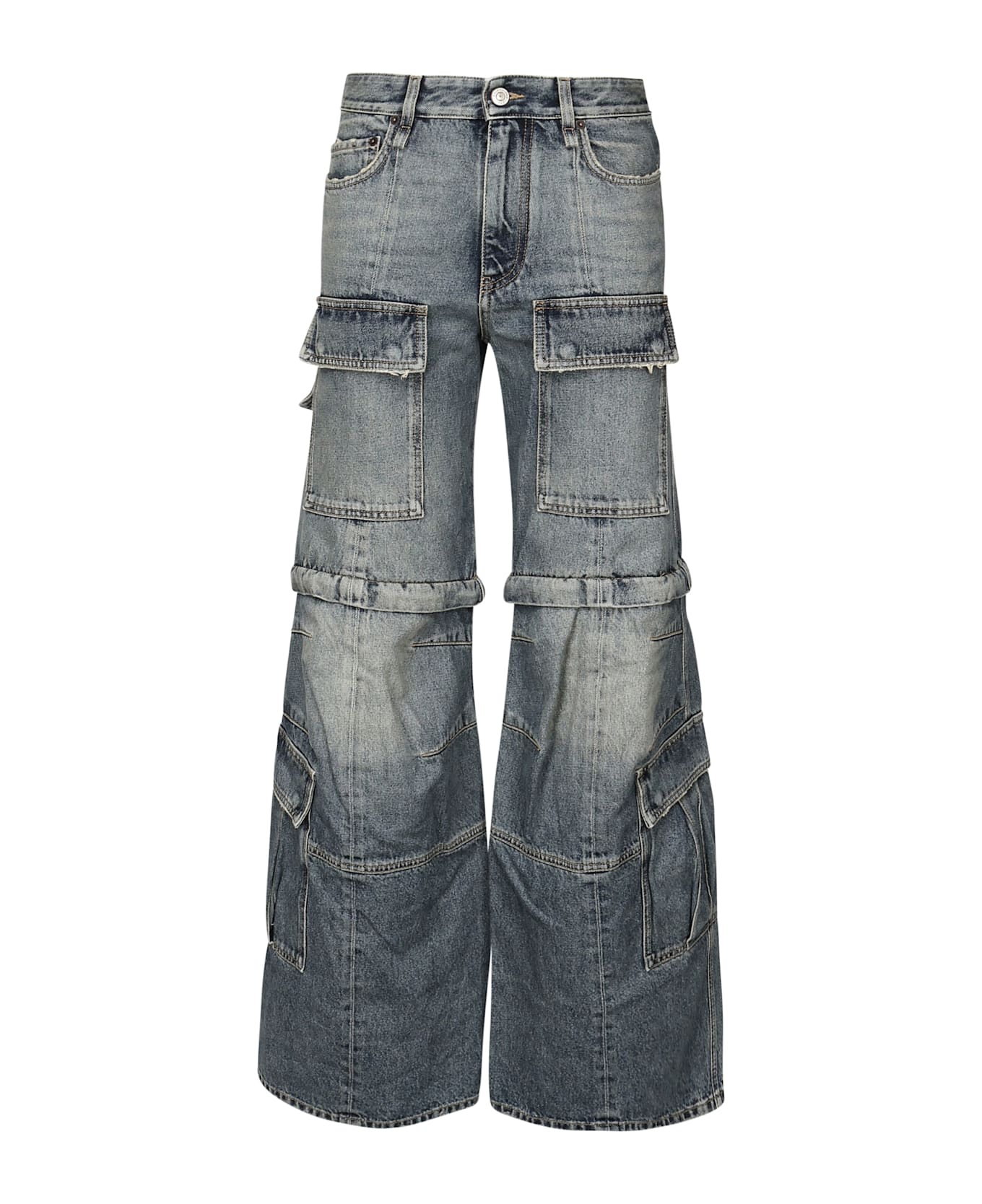 -Soft black left-hand denim -Flared leg -Medium waist -Concealed zipper flap -5 belt loops -2 slit pockets on front -7 pockets: 2 on front, 3 on sides, 2 on back -Zip at knee height to remove bottom -Size shown in photo is XXS -Made in Italy -Color: Blue Composition: 100% Cotton
