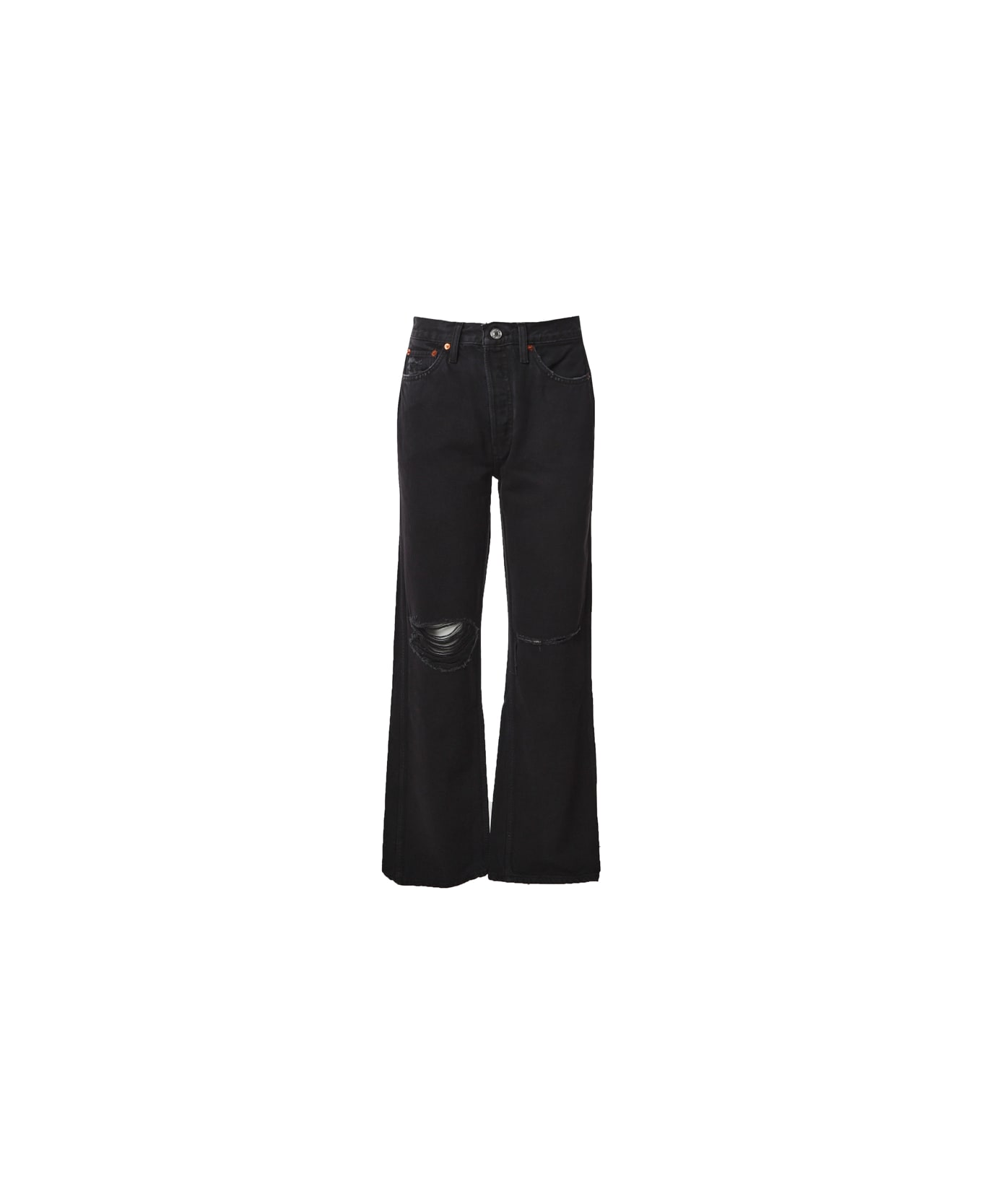 Black Flared Jeans from RE/DONE -High-waisted jeans -Loose fit on the legs -Cord detail -Concealed button and zip closure -Five pockets -Loop loops -Made in Turkey -Colour: Black -100% Cotton