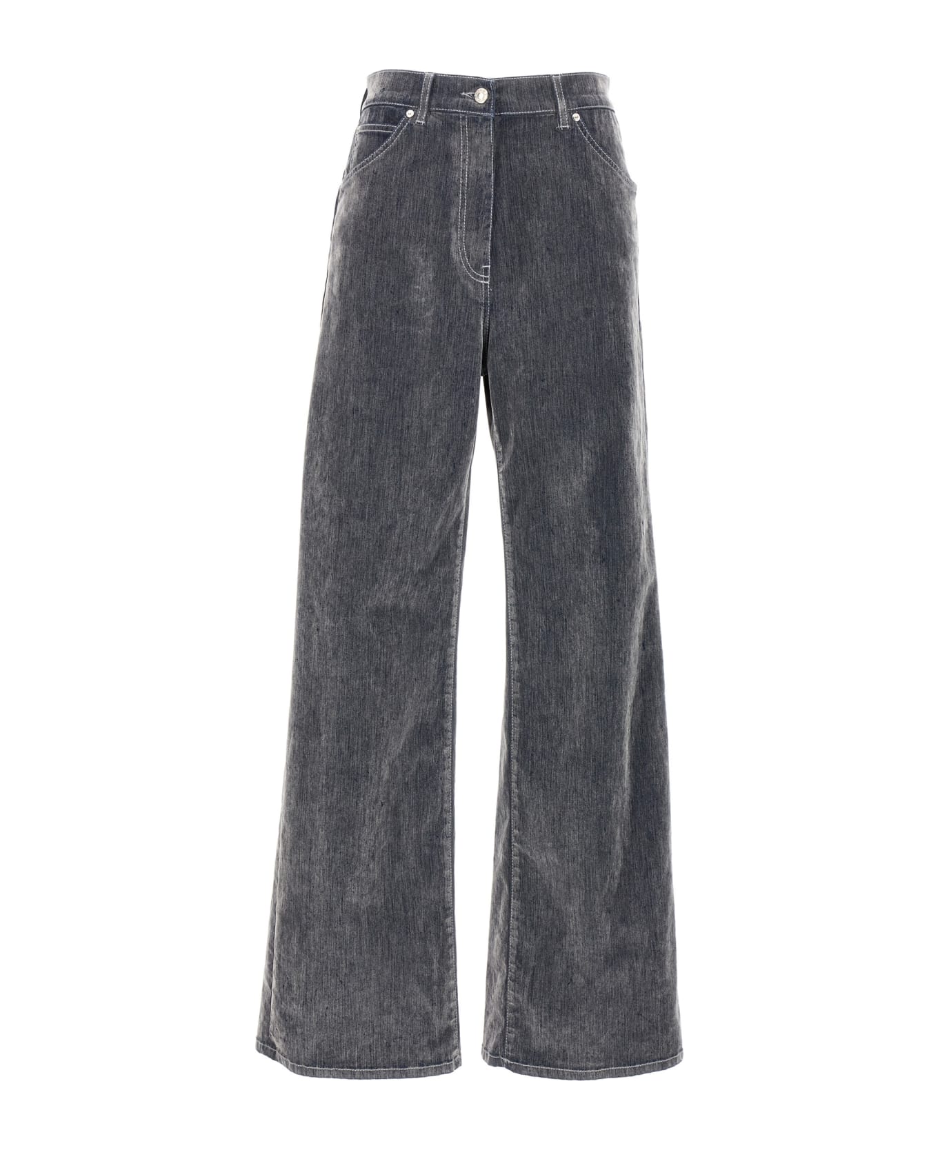 Flocked effect stretch cotton jeans with wide leg, high waist, zip and button closure.