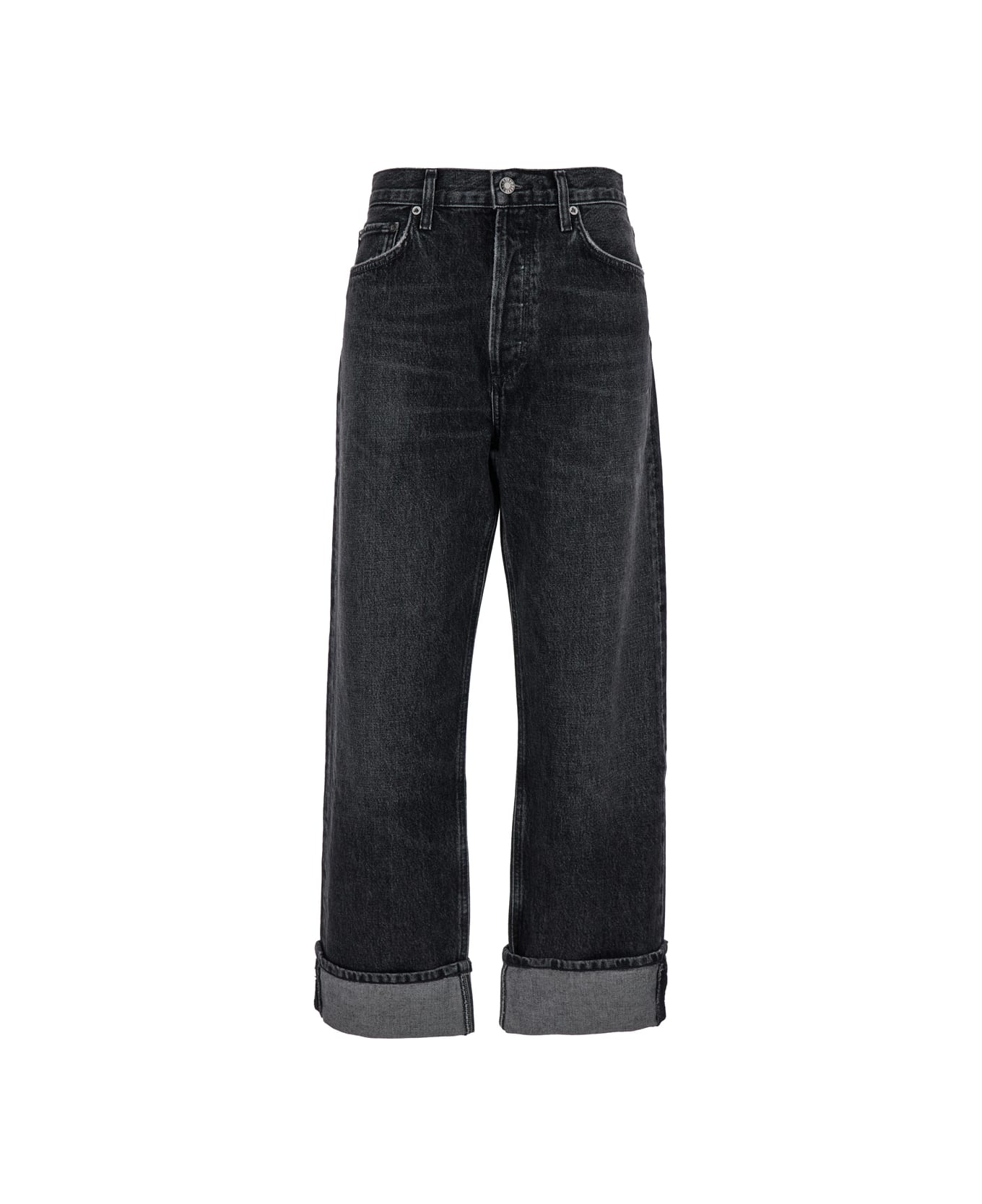 'fran' Black Bootcut Jeans With Cuffs In Denim Woman