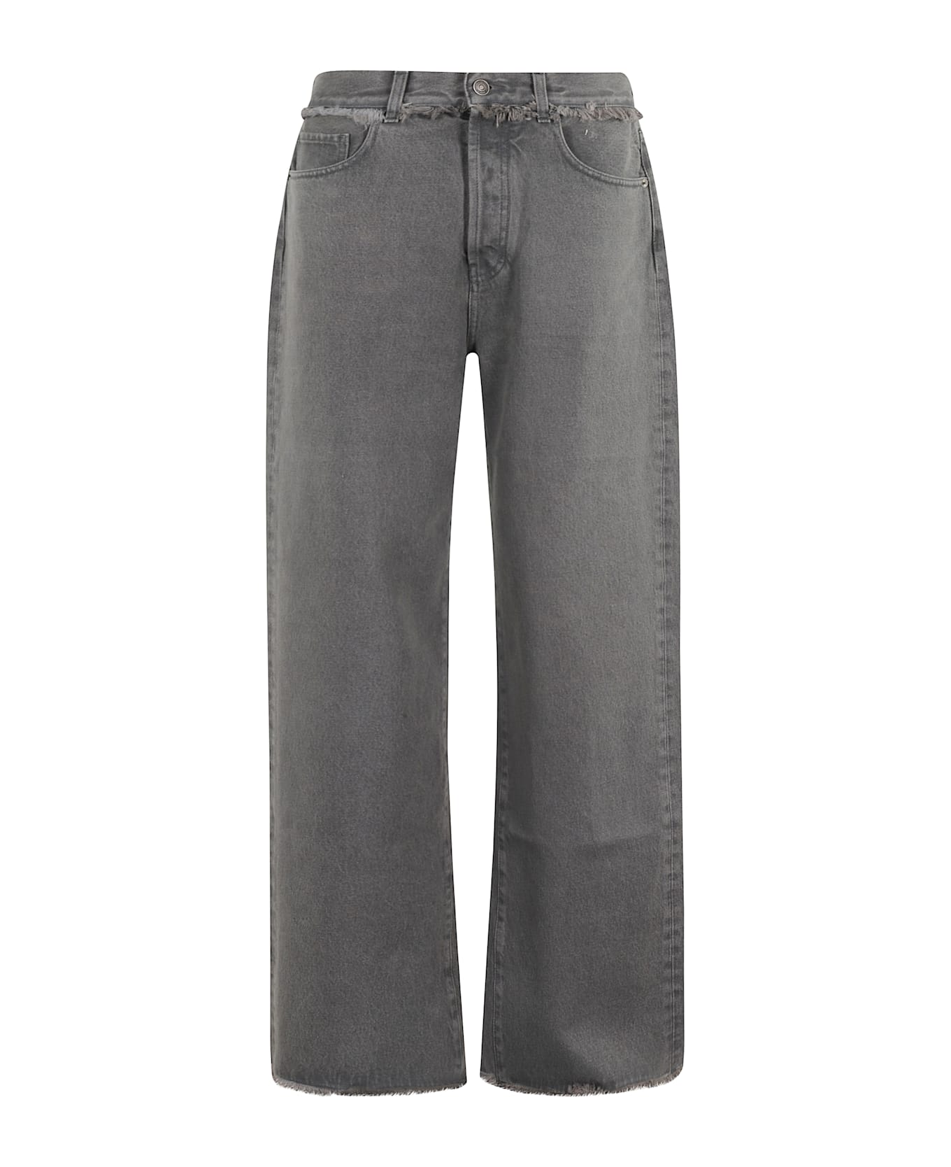 Free Horizons Jeans - Alanui - Gray color - Low waist with belt loops and frayed profile - Wide leg - Five-pocket style - Front button closure - Loose fit