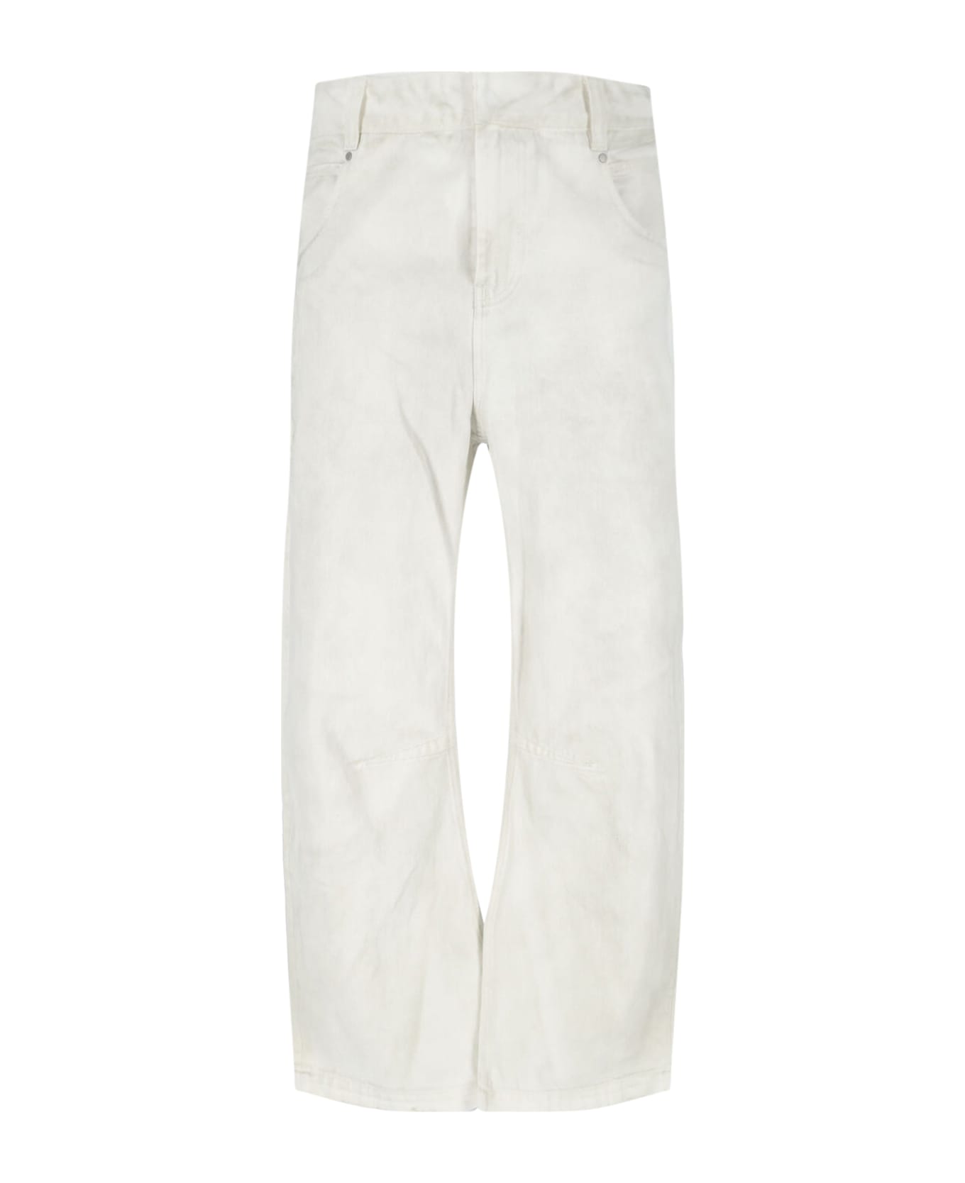 Entire Studios "Gem" wide jeans in white cotton with usured wash, high waist, belt loops, button and zip closure, five pockets, side button flap pocket, back logo patch, wide leg.