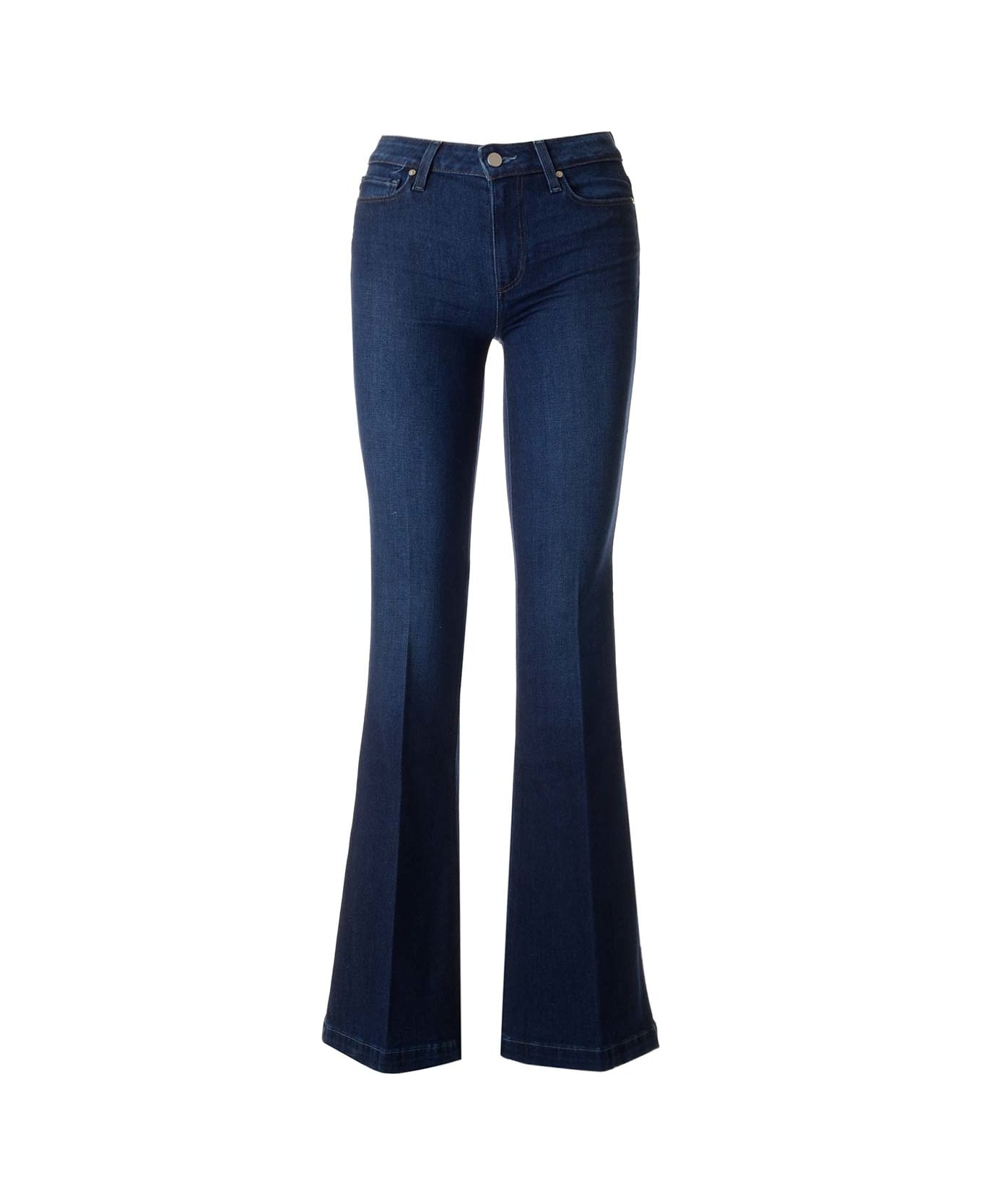 "Genevieve" flared jeans in blue stretch denim from Paige, featuring a mid rise, 5 pockets, slim fit.
