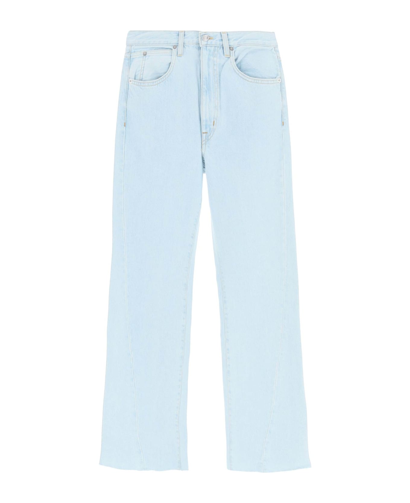 Grace five-pockets jeans by SLVRLAKE in Hard Luck light wash pure cotton denim, characterized by the wide leg cut with twisted seam and raw hem. High waist, belt loops and front closure with zip fly and silver-finished metal button. The model is 177 cm tall and wears a size 26.