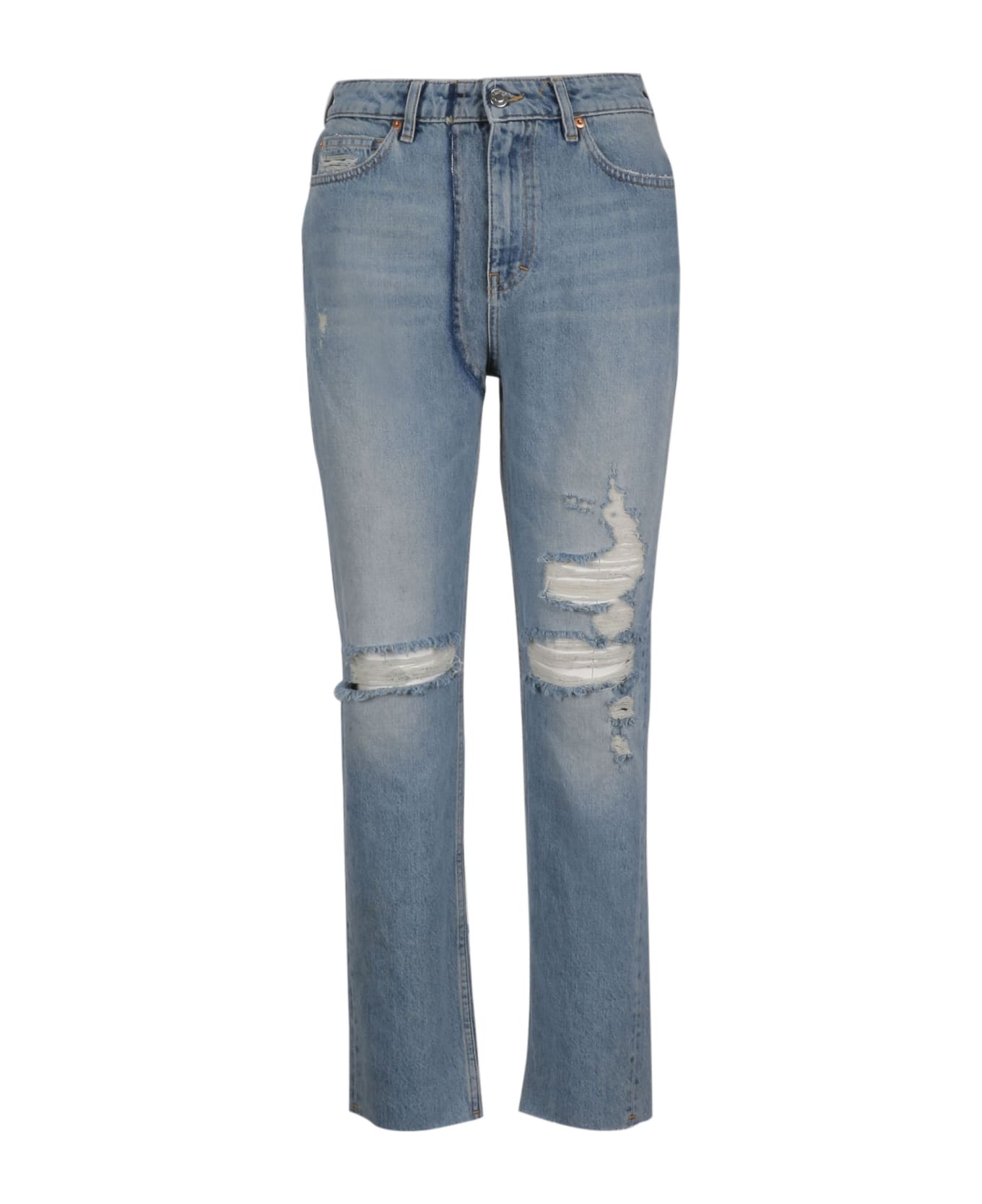 Classic Jeans from Iro: Blue Classic Jeans with five pockets style, waistband with belt loops, distressed detail, front button and zip fly fastening.