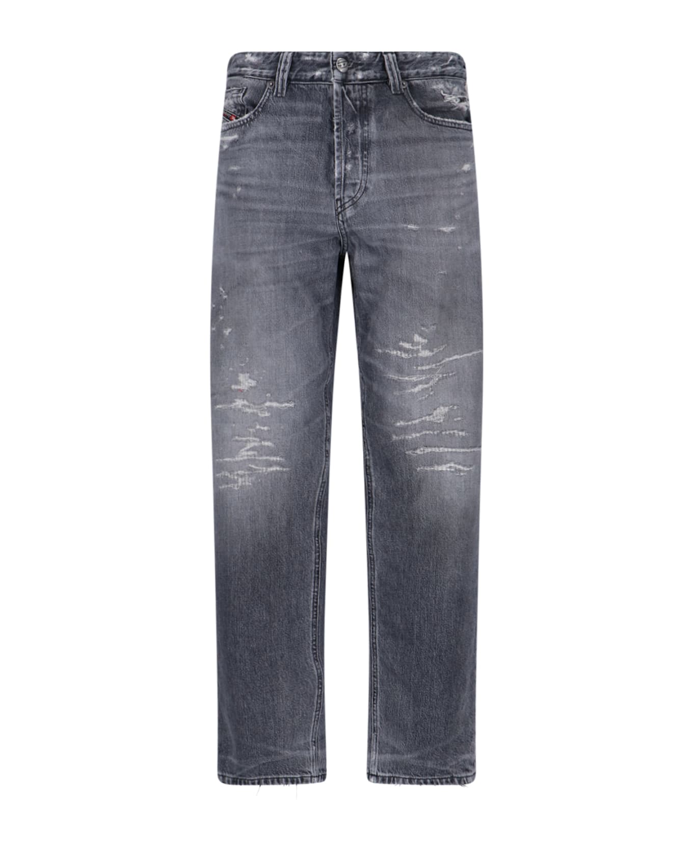Diesel "1988 D-Ark" jeans in gray denim with worn details, low waist, belt loops, button closure, five pocket design, back logo label, logo detail front pocket, straight leg. Composition: 100% Cotton