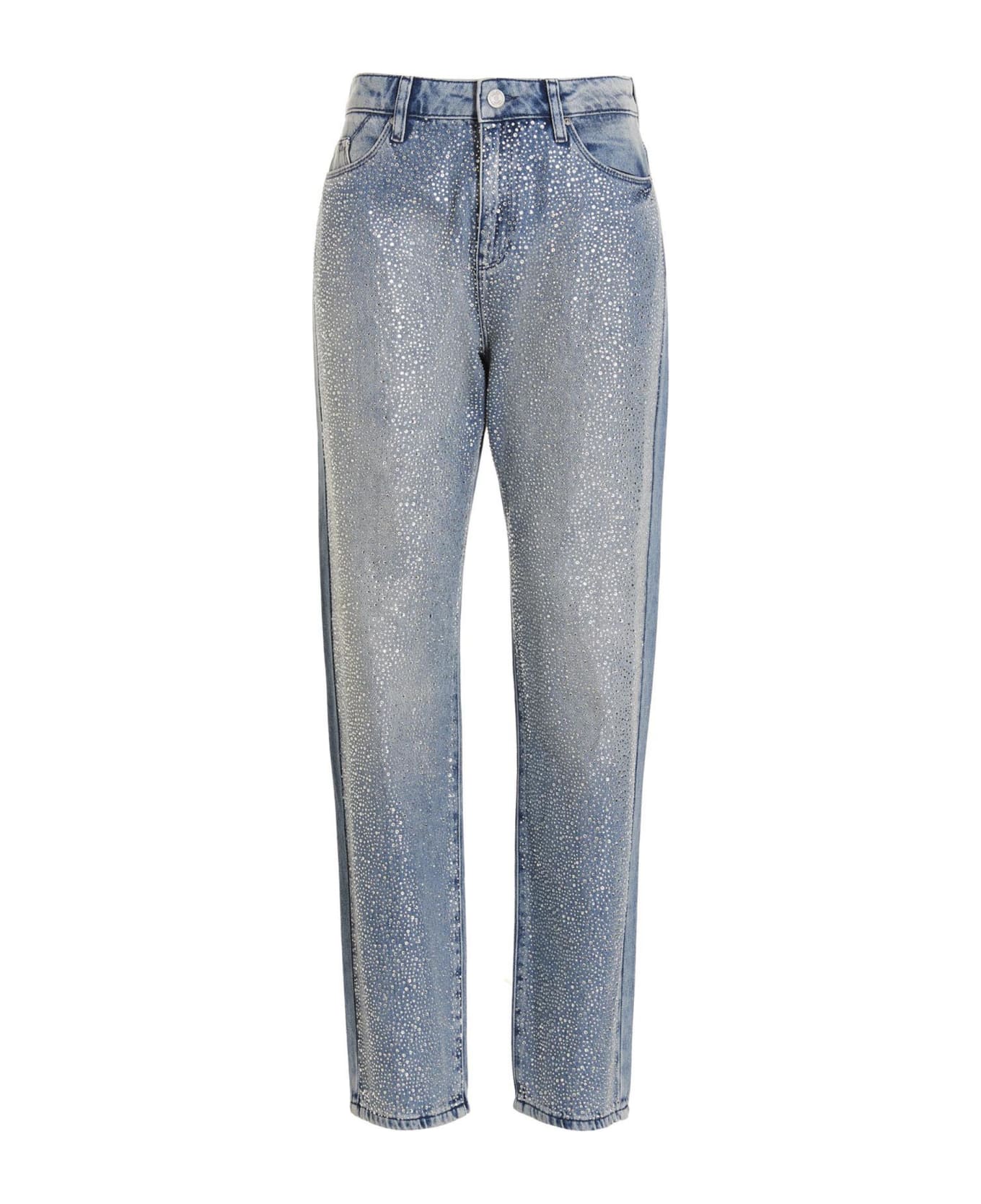 Rhinestone Splash' cotton denim jeans with front sequin appliqués, zip and button closure and five pockets.