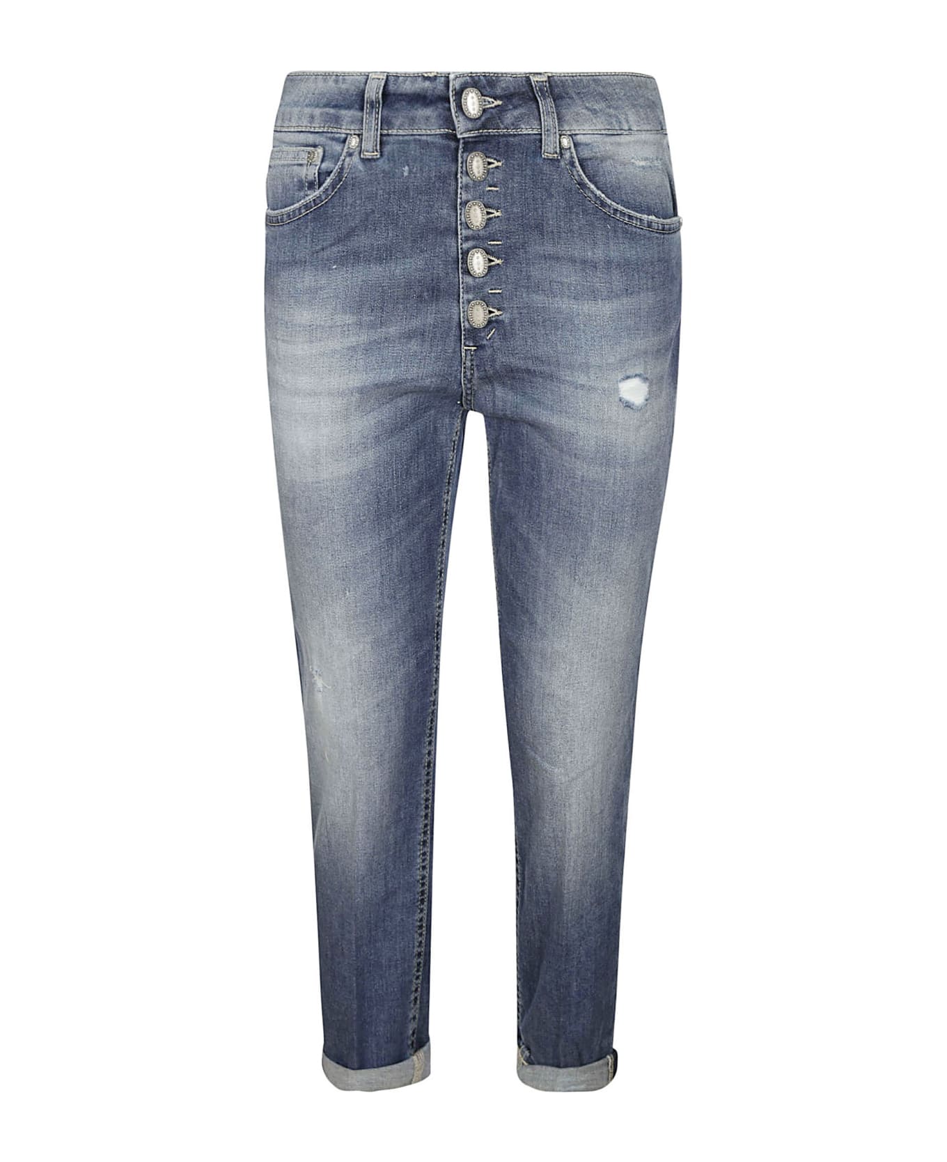 Dondup Blue cotton trousers, five pockets, jewel button closure, logo patch on the back.