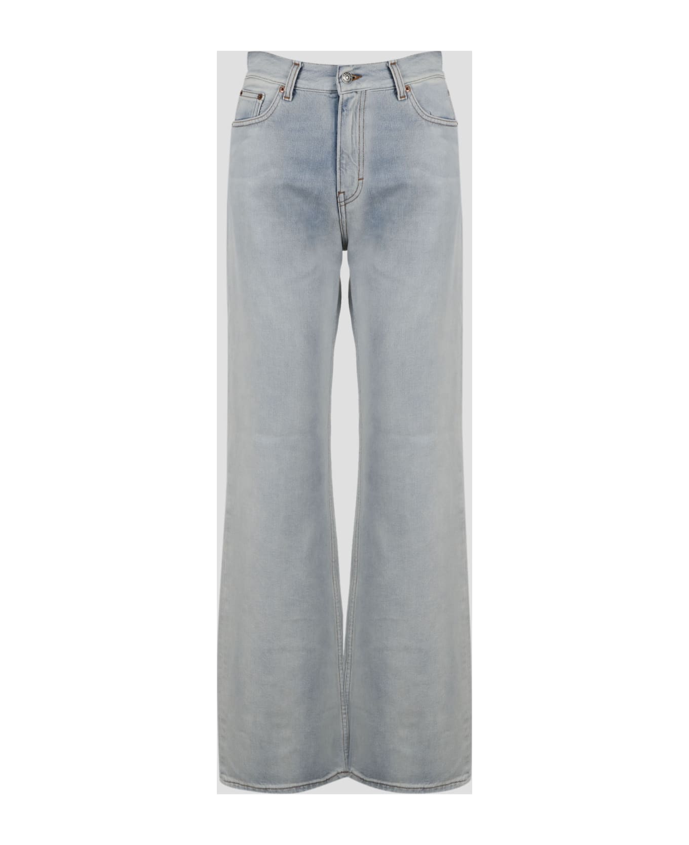 Haikure Korea jeans, in worn blue organic cotton denim. - SS23 - Wide leg - 5 Pockets - Belt loops at the waist - Zip and button closure - Logo label on the back - Made in Italy - 100% Organic Cotton