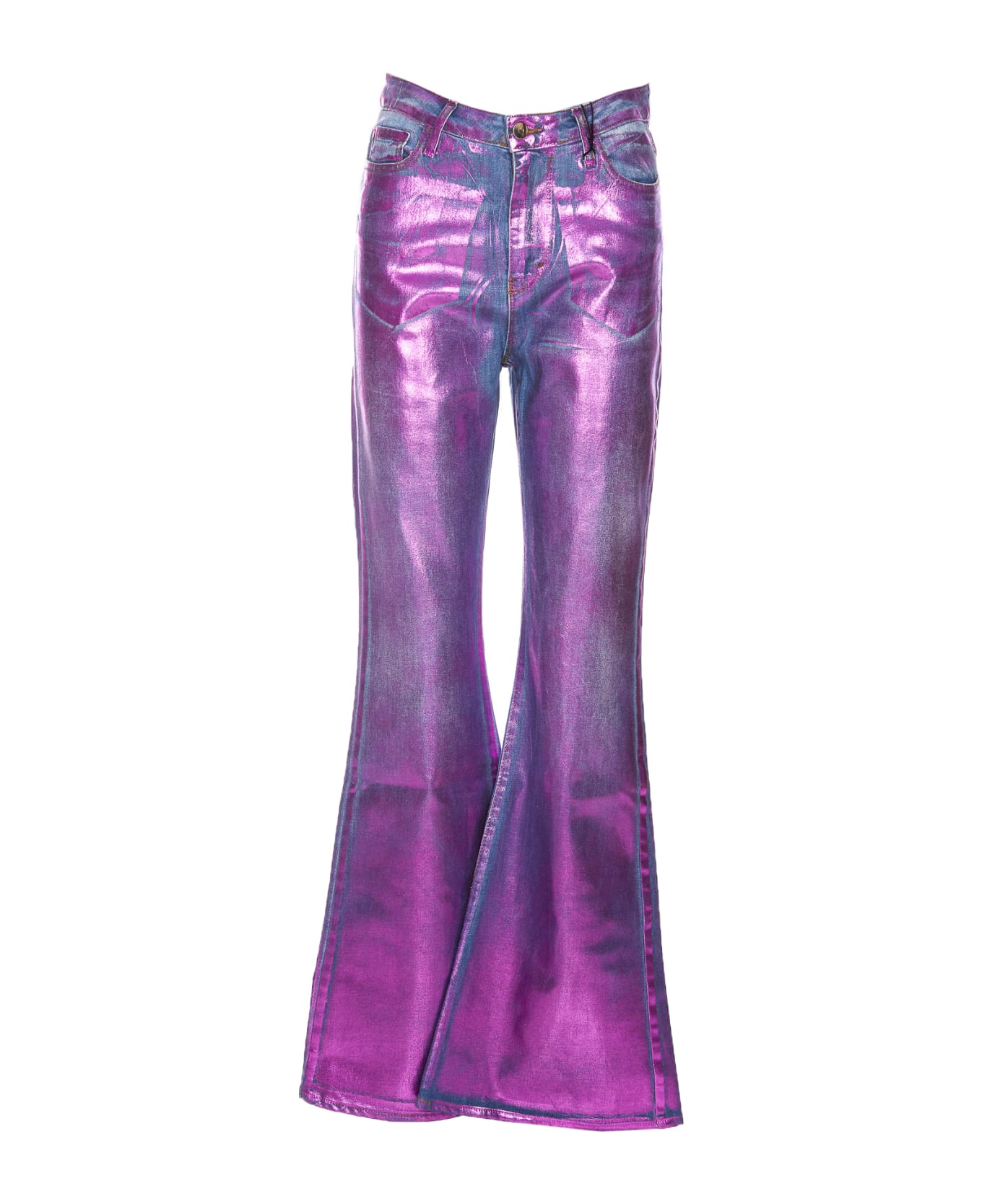 Madison maison fuxia jeans, zip and button clodure, pockets, elephant leg, metalized effect, flare model