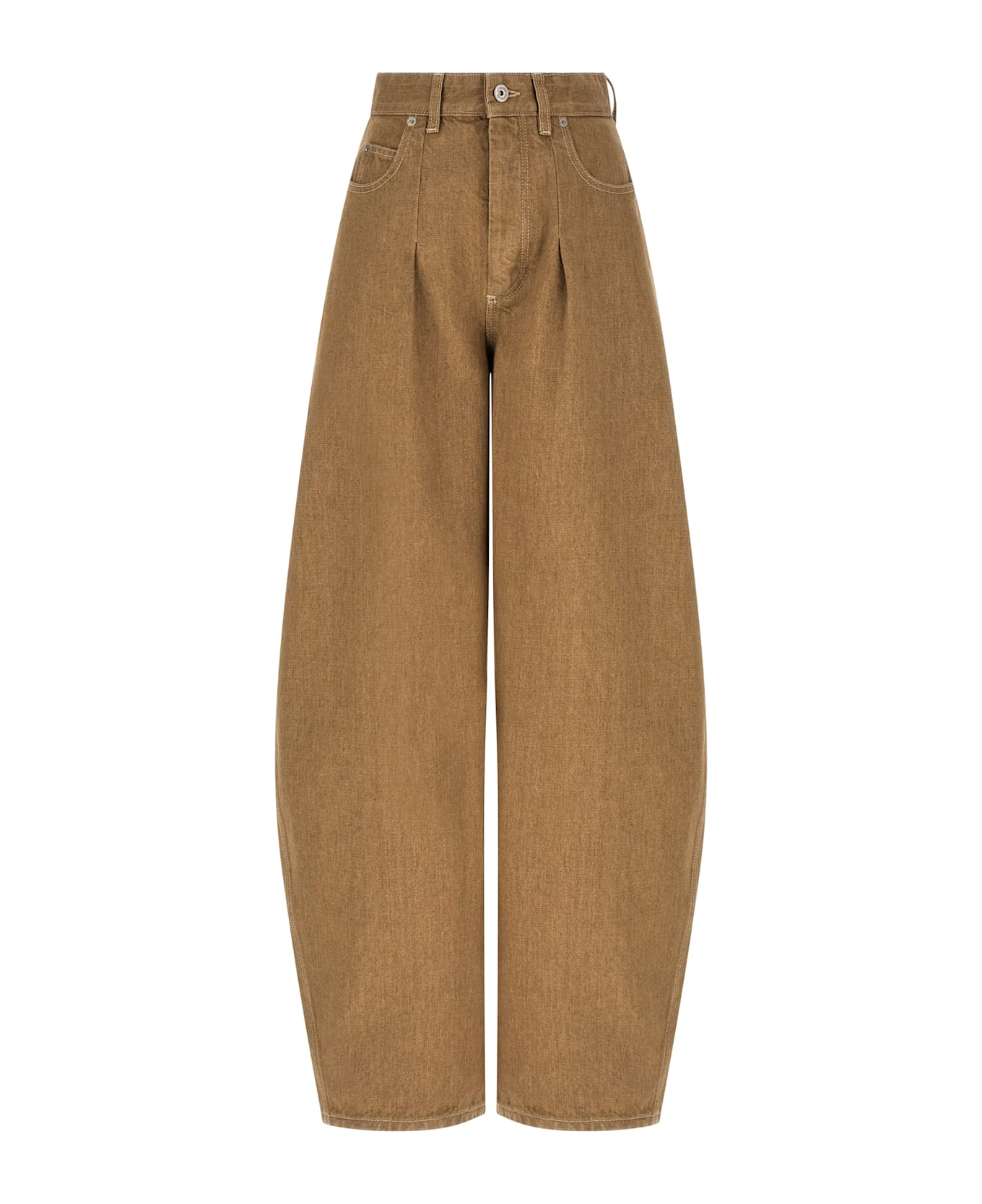 'Le De-Nîmes Ovalo' washed cotton denim jeans with tone-on-tone logo embroidery on the front, high waist, wide leg with a curved cut, front and back cuffed pinches, front button closure, five pockets. Composition: 100% cotton