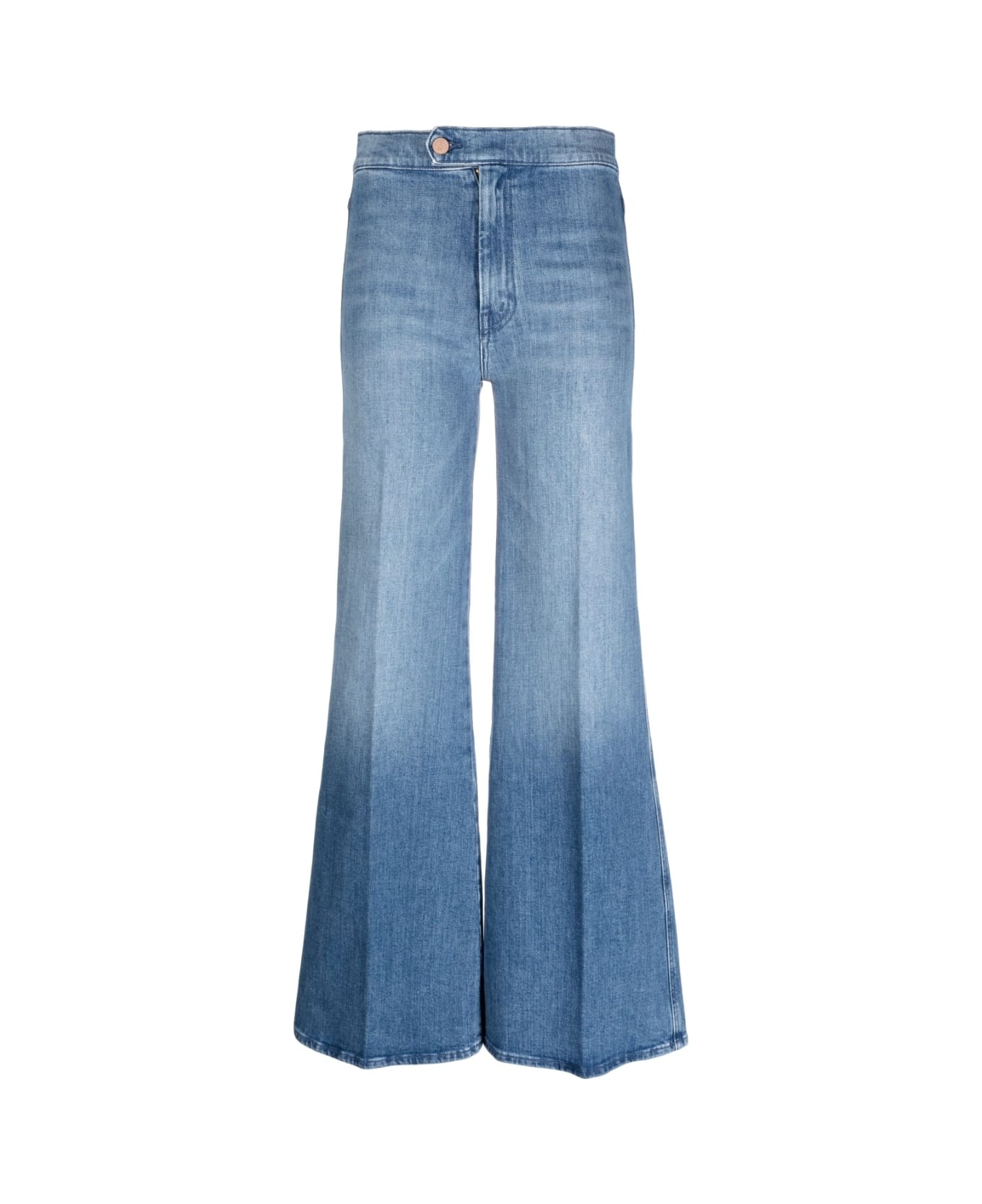 Jeans High-waisted Front button and zip fastening Branded button Flared leg Light blue Cotton denim Relaxed fit