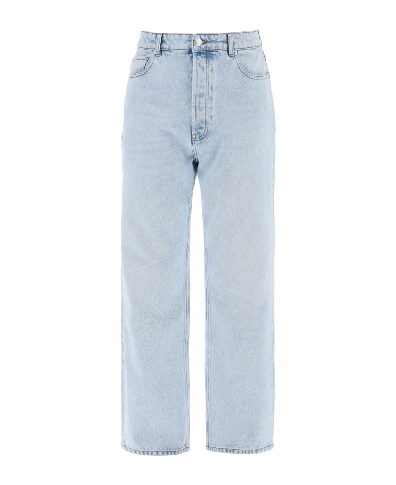 Unisex Ami Paris jeans in light wash denim. Featuring a straight and relaxed fit with a regular waist, they have a classic five-pocket construction complete with zip fly and belt loops. Branded patch on the back. Composition: 100%CO